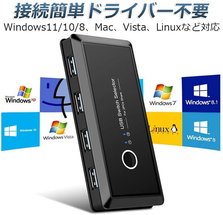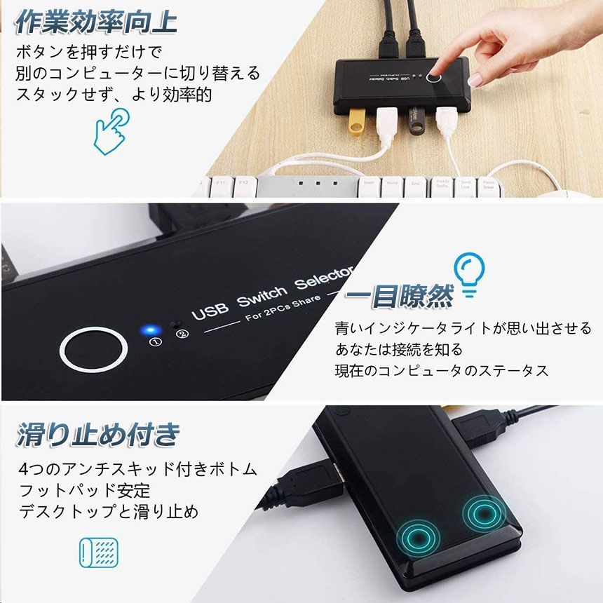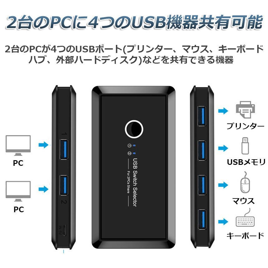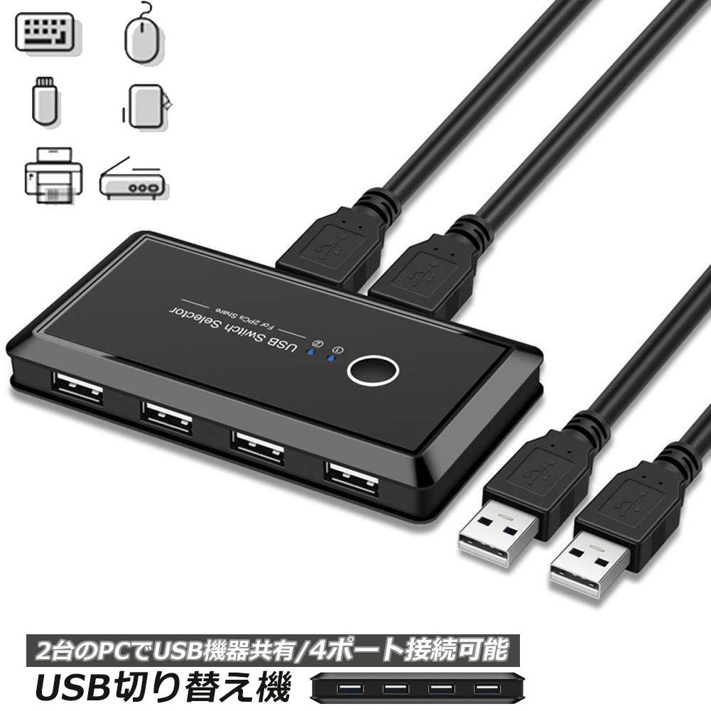 USB 切り替え機 切替器 pc2台用 usb 切替器 USB 4ポート 高速転送 セレクター スイッチ 手動切替器 プリンタ マウス キーボード ハブ ハードディスク など 切替 ケーブル付き