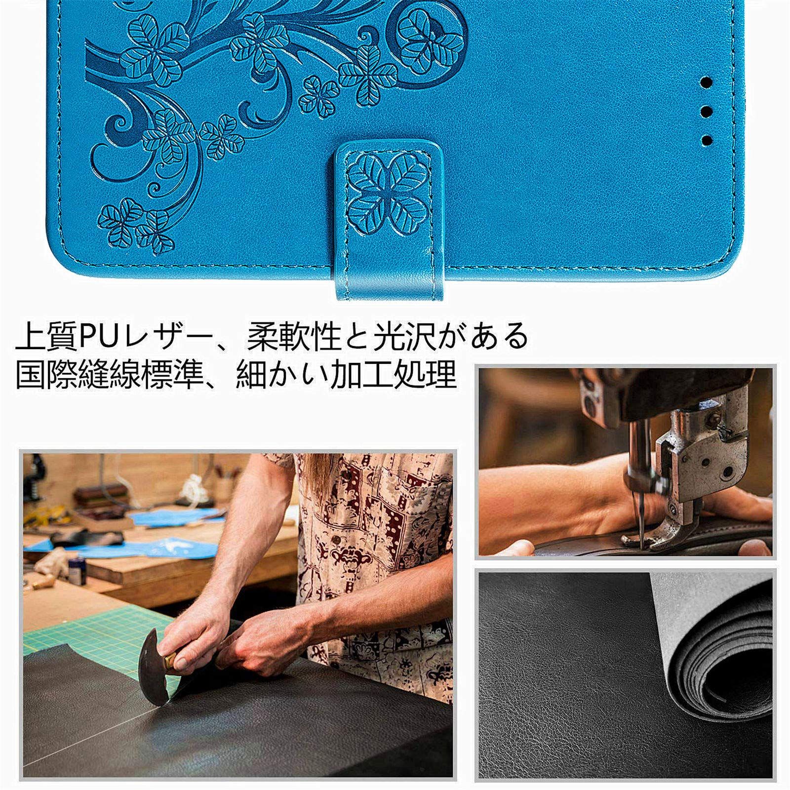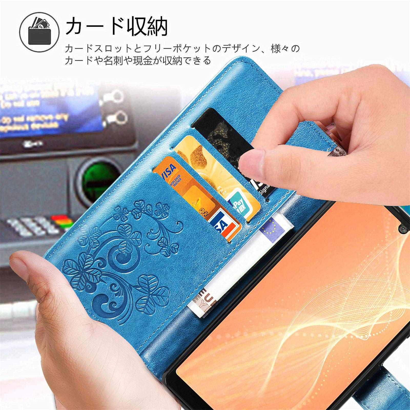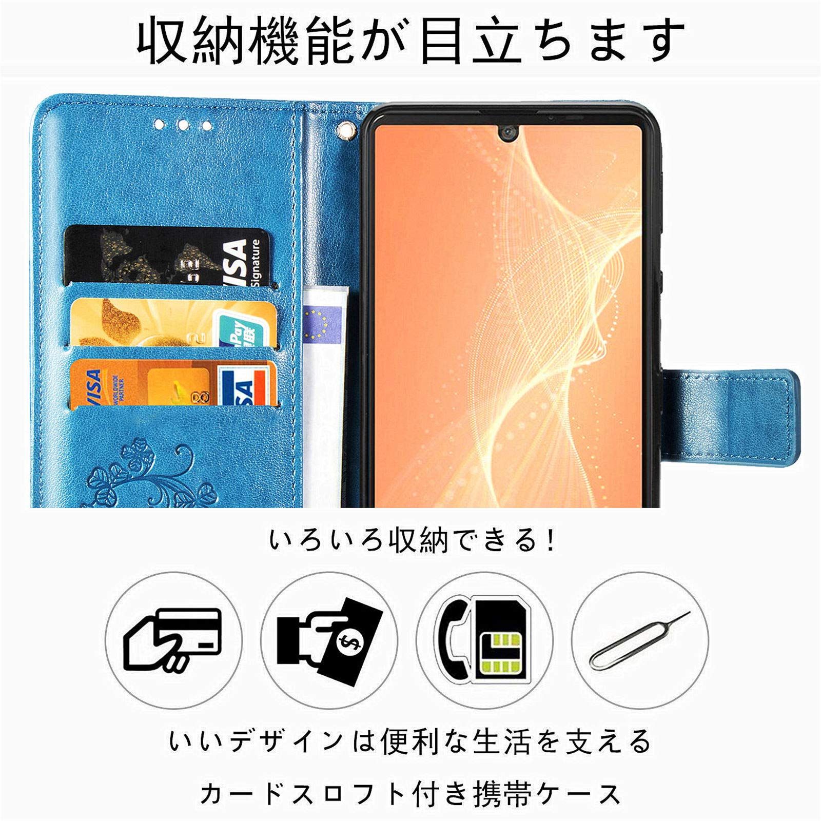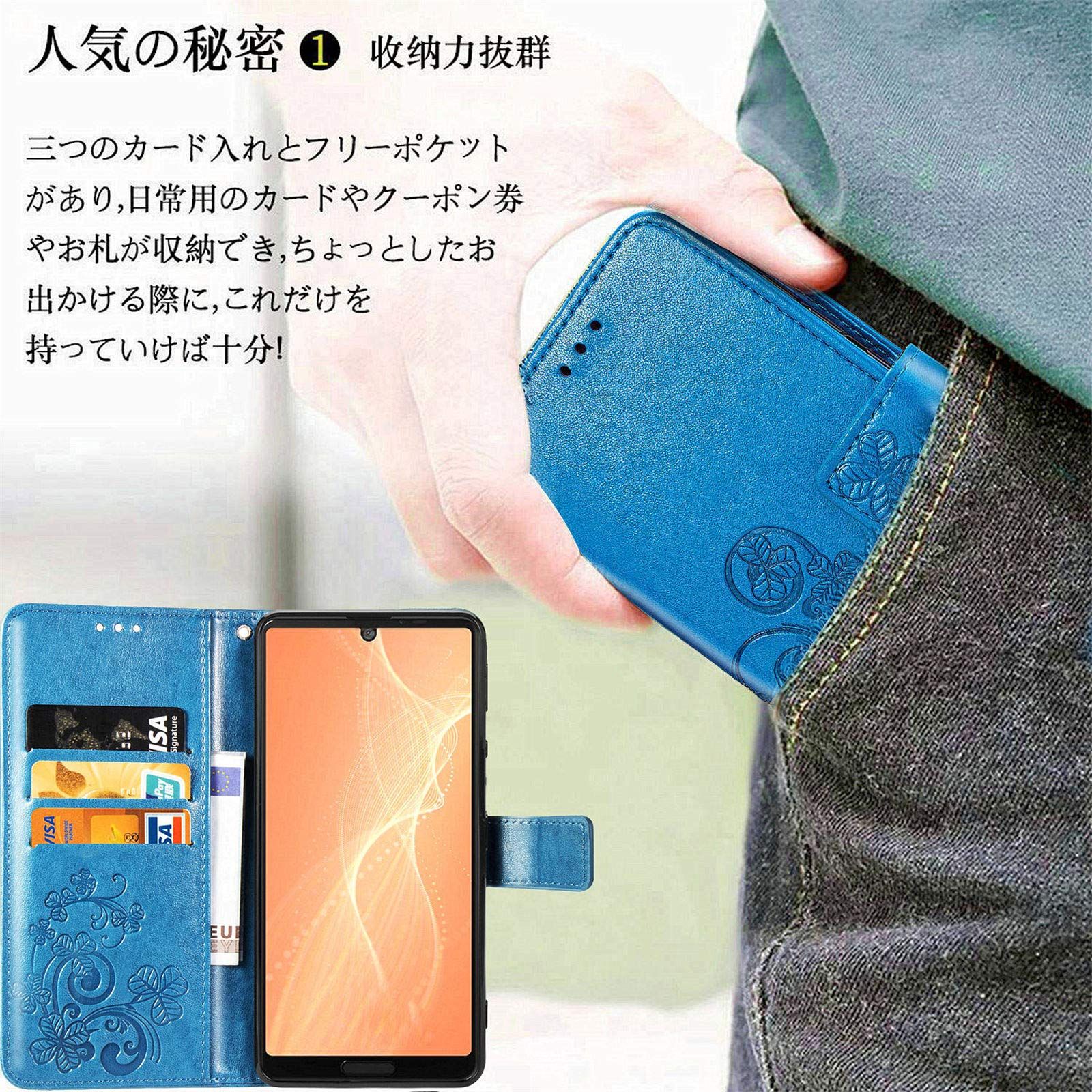 対応AQUOS sense4 docomo SH-41A sense5G SH-53A au SHG03 sense4 lite sense4 basic ケース 手帳型 ノートブック型携帯電話保護カバー多機能携帯電話ホルスター財布携帯電話ホルダーバンプパターンテクスチャ耐久性摩擦耐性携帯電話ケース男性と女性に適した多色オプション (四つ葉のクローバーブルー)