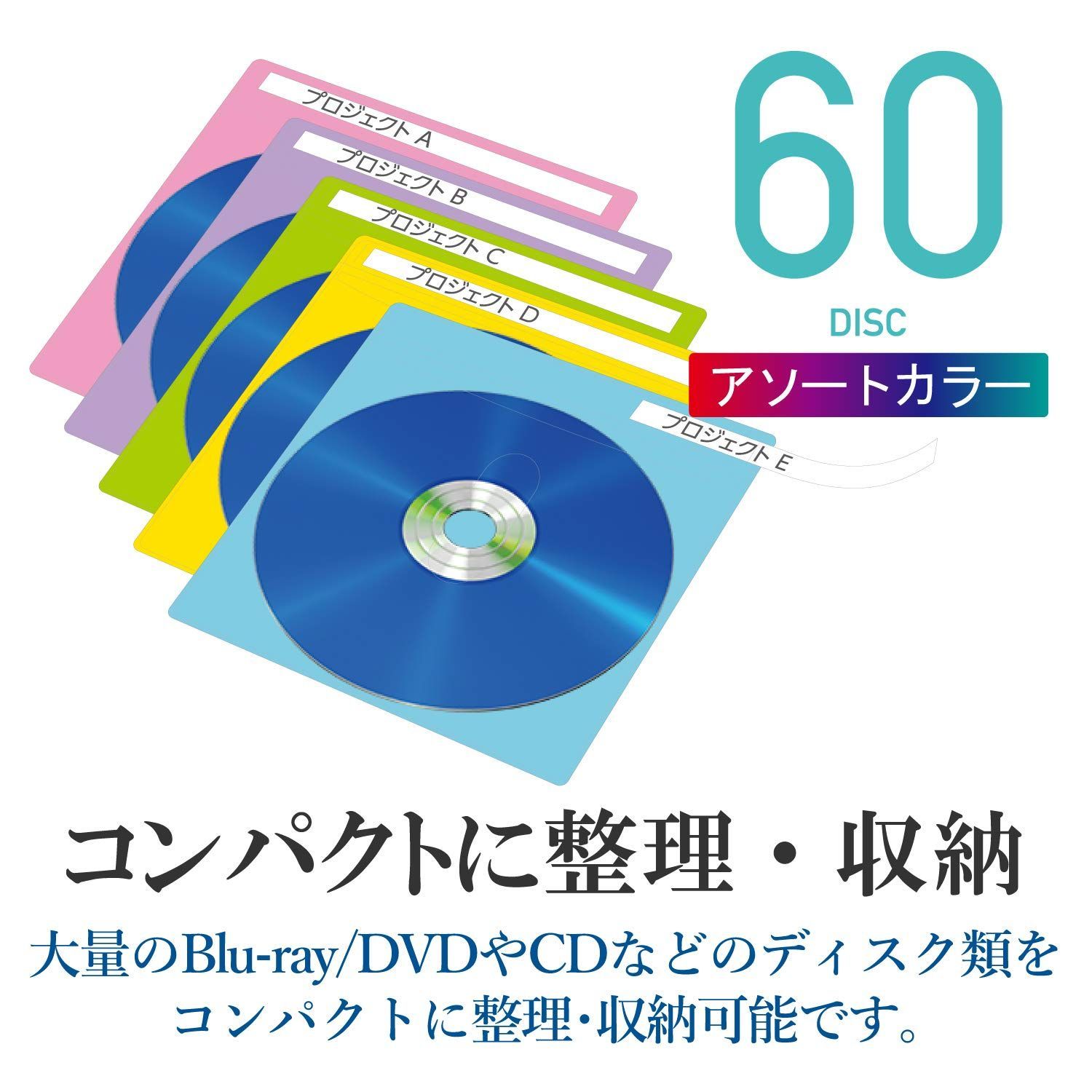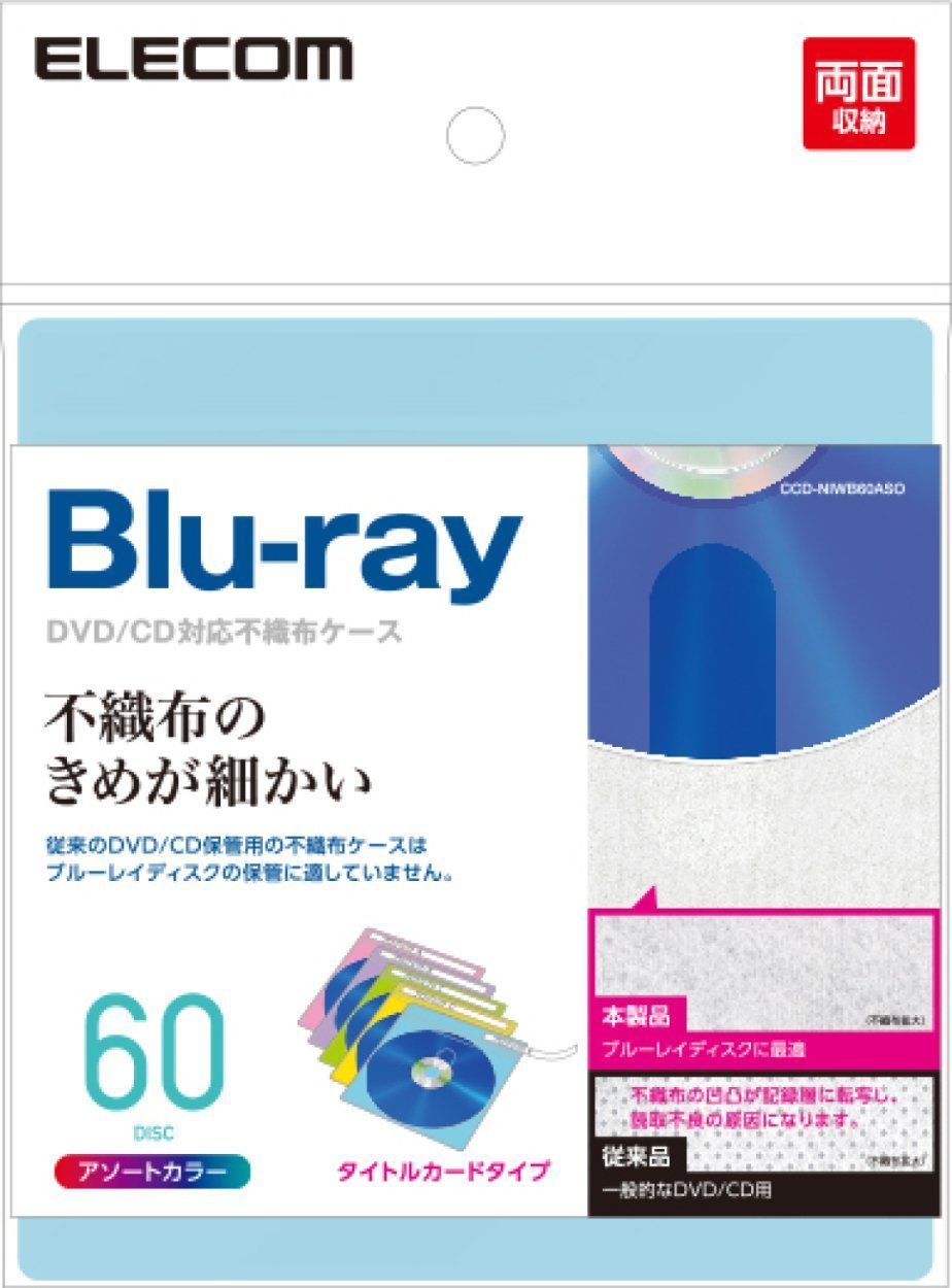 新品 エレコム DVD BD CDケース 不織布 両面収納 30枚入 60枚収納可 5色アソート CCD-NIWB60ASO