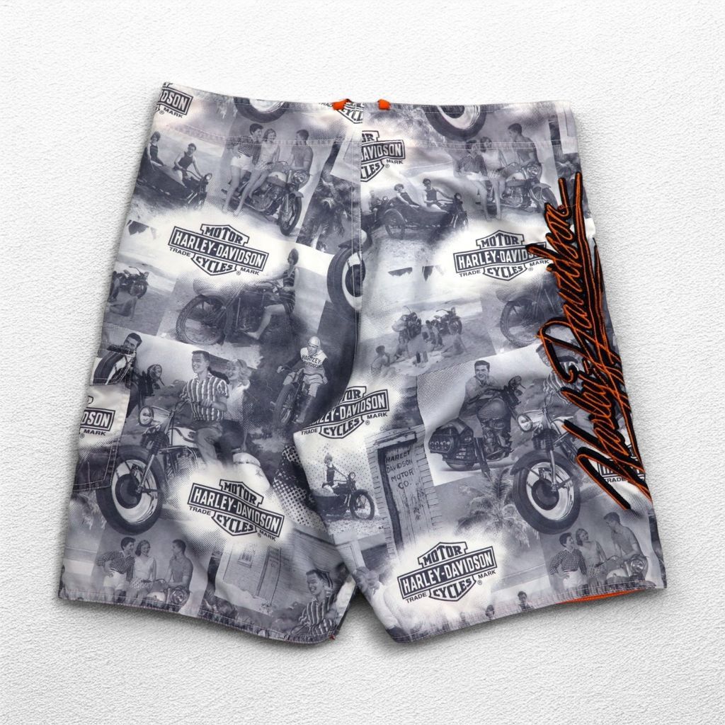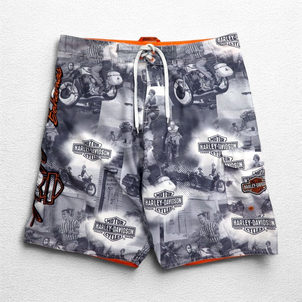 HARLEY DAVIDSON 水陸両用 総柄 ボードショーツ ショートパンツ XL グレー ナイロン