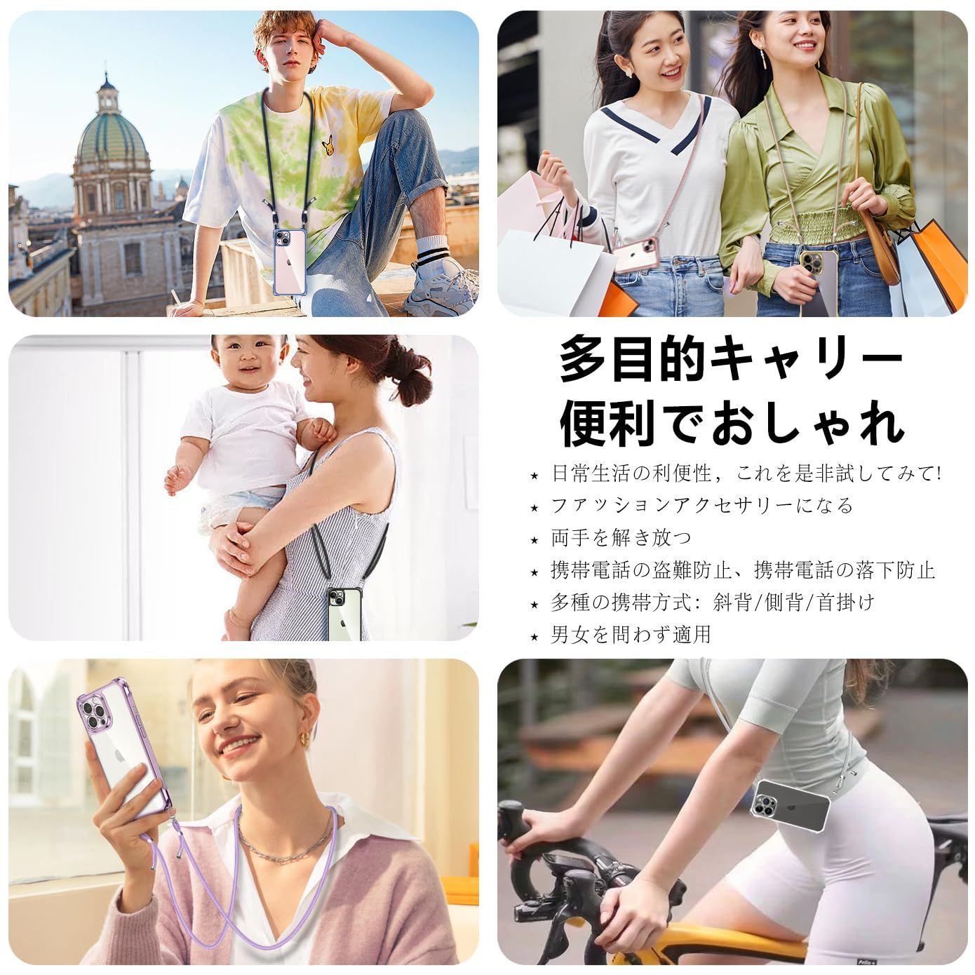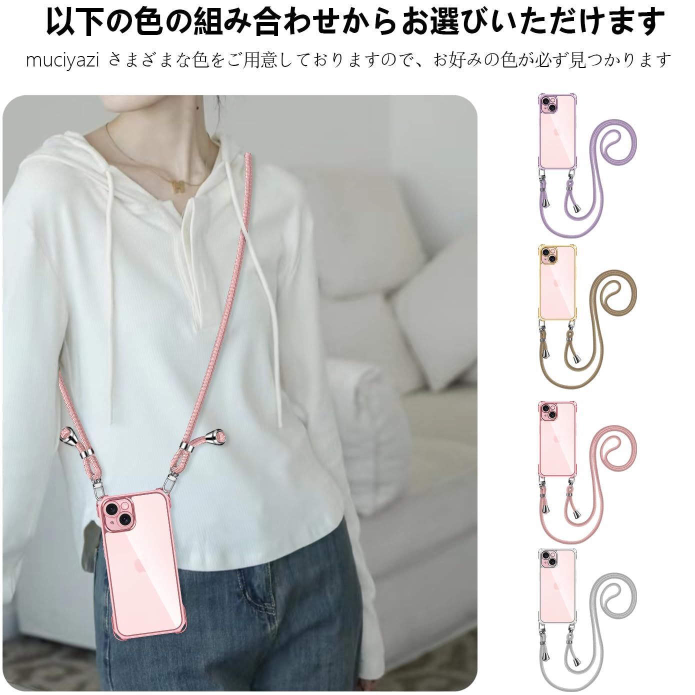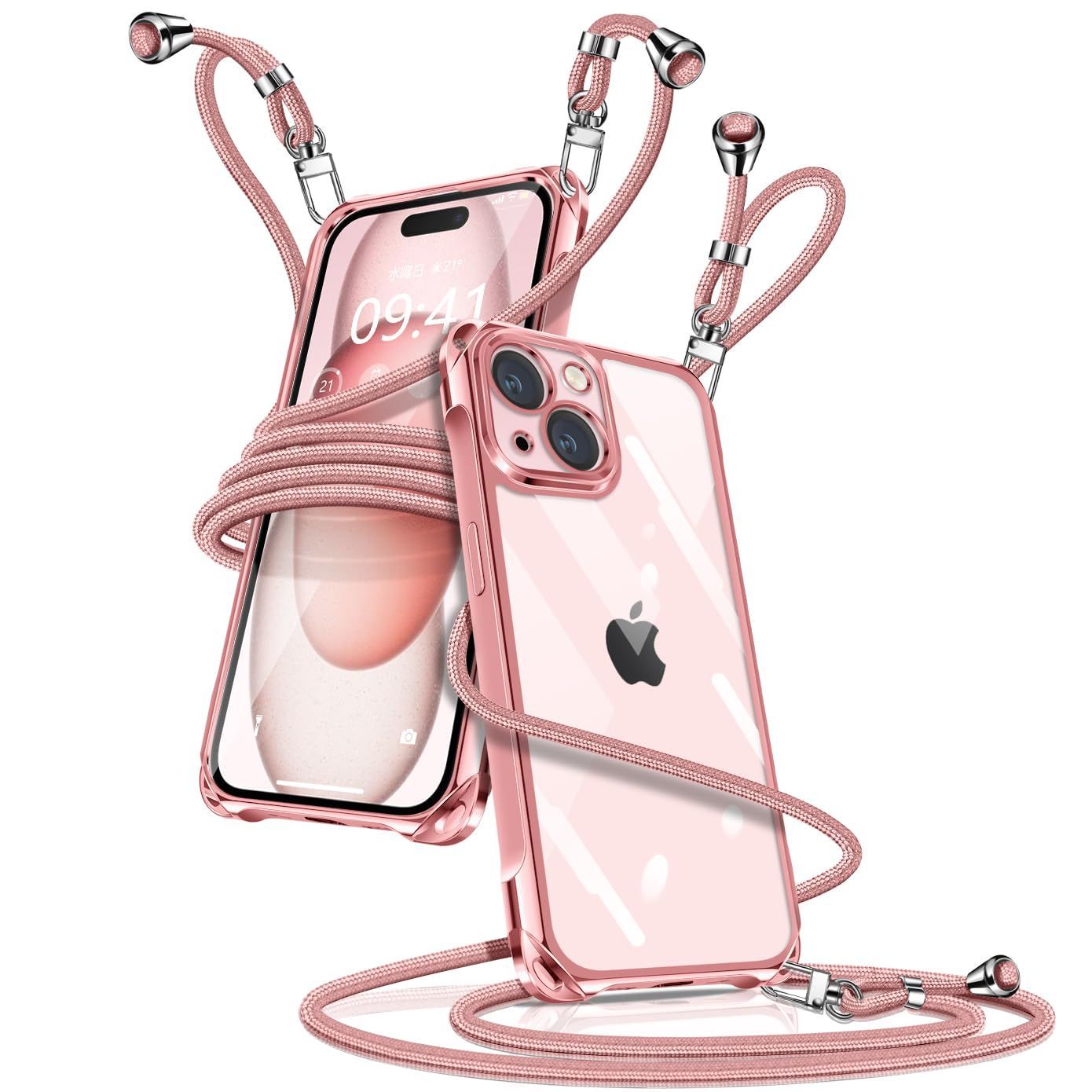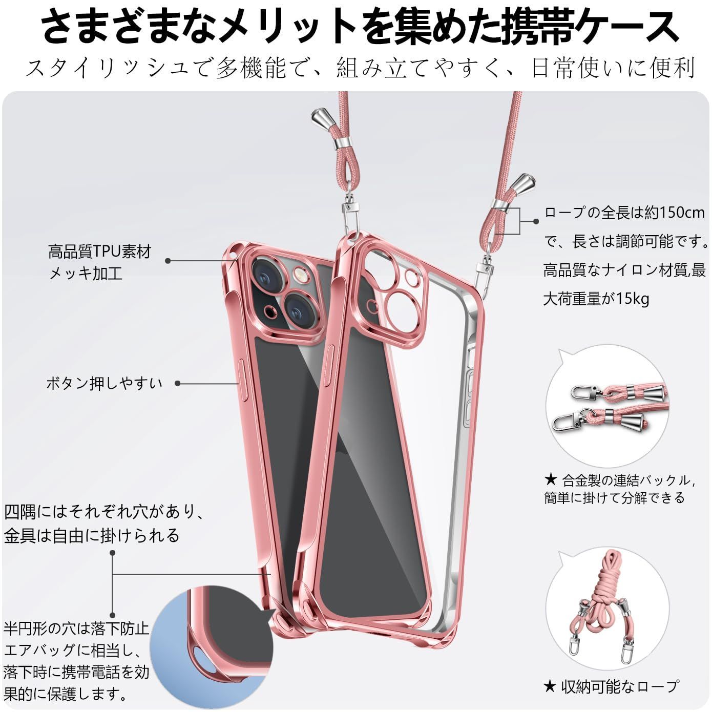 【特価商品】長さ調整可能 織りストラップ付き 斜めがけ 紐付き 携帯ケース 取り外し可能 TPU 軽量 薄型 透明 落下防止 縄掛けケース 斜めかけ 肩掛け カバー 紛失防止 アイフォン15 スマホケース iPhone15 ショルダー ワイヤレス充電対応(ロー