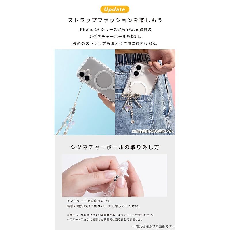 透明なだけじゃない。細部までこだわったクリアケース。「iFace Look in Clear」のMagSafe対応スマホケース。シンプルなデザインに機能性、耐衝撃性を備えた、ミニマルな透明クリアケースです。MagSafeアクセサリーとの相性も良く、スタイリッシュなライフスタイルを叶えます。シグネチャーボール搭載でストラップの付け方アレンジが今まで以上に広がります。