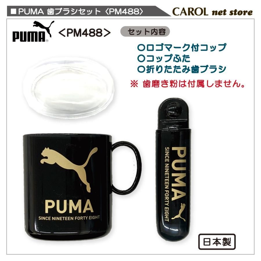【新品】かっこいい! PUMA プーマ 歯ブラシセット はみがきセット 男の子 PM488 ブラック/ゴールド コップ 歯ブラシ はみがき 歯みがき粉付 旅行 レジャー お泊まり 携帯歯ブラシ 持ち運び便利 子供 大人 定形外郵便
