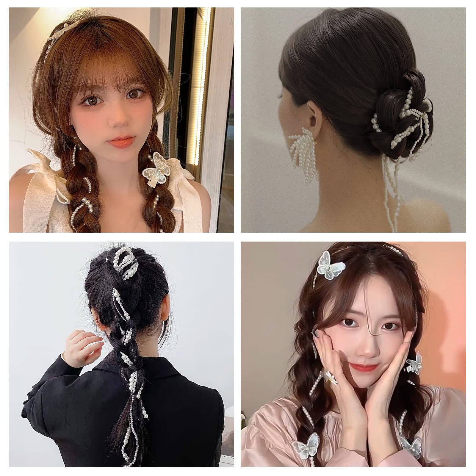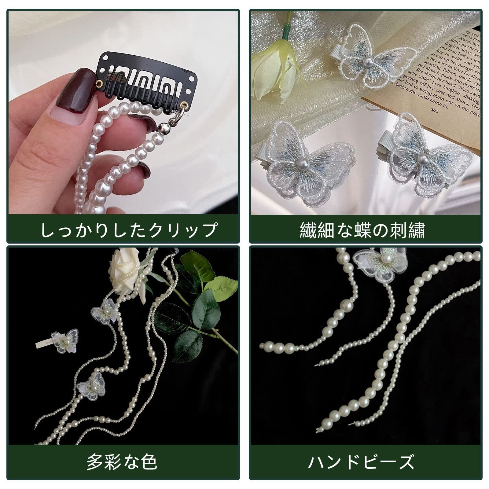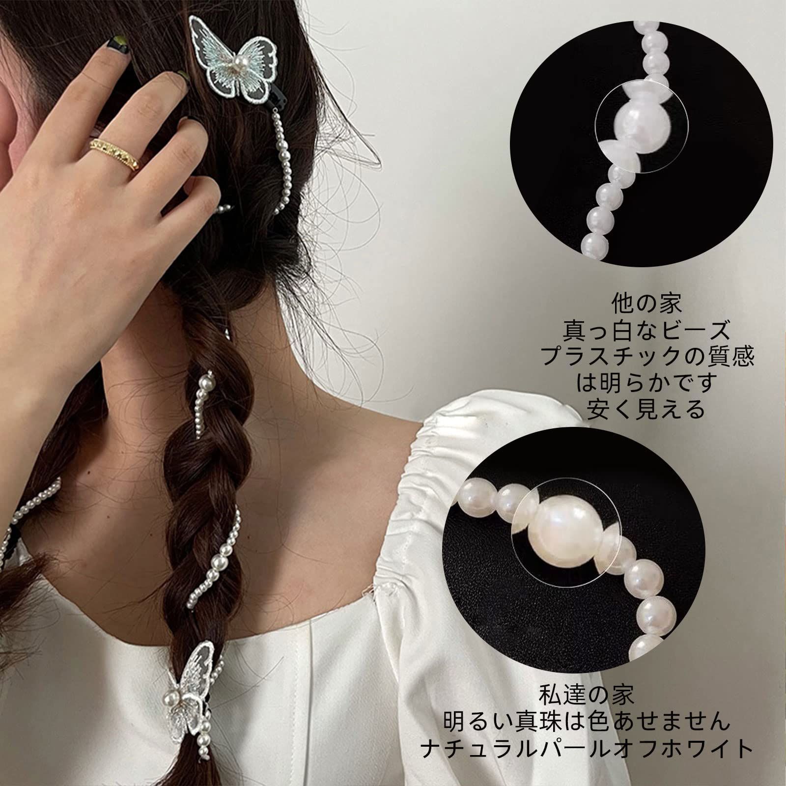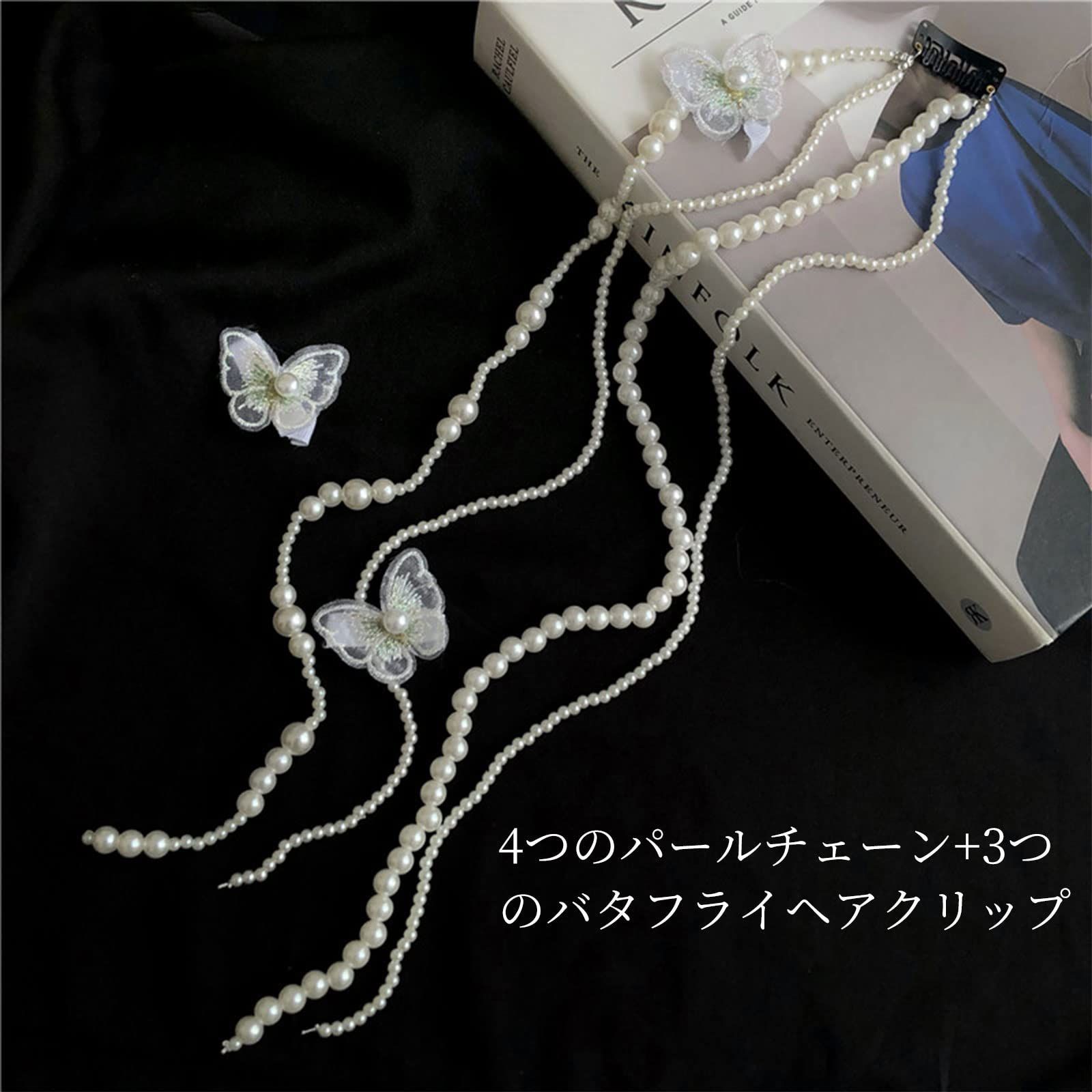 卒業式 披露宴 結婚式 入学式 ヘッドチェーン パール パール ウェディング 撮影 蝶【4つのチェーン+3つのヘアクリップ】ヘッドドレス 髪飾り ZHEJIA
