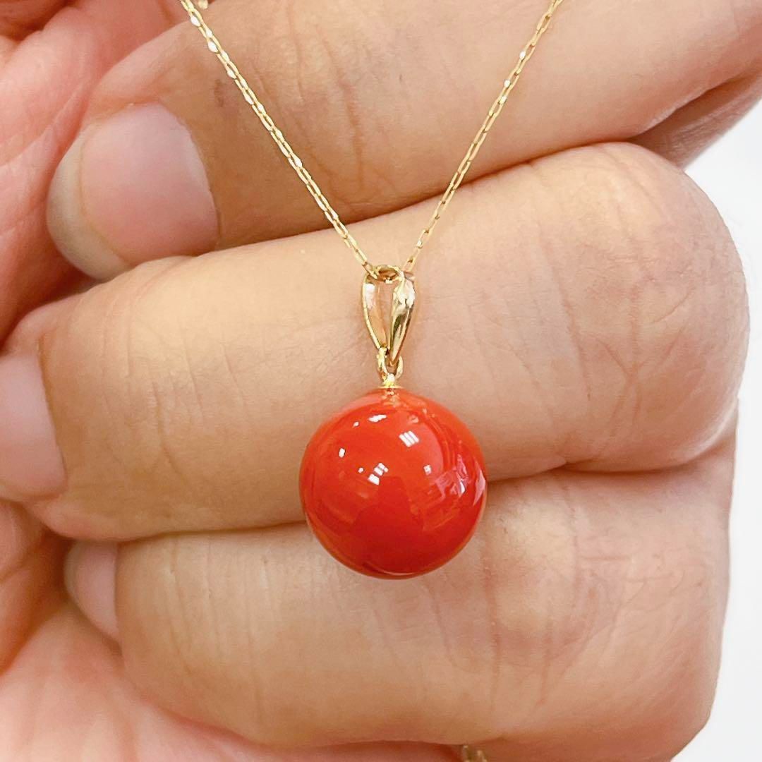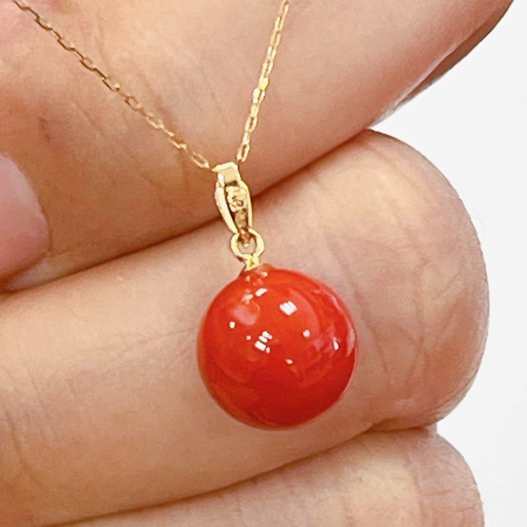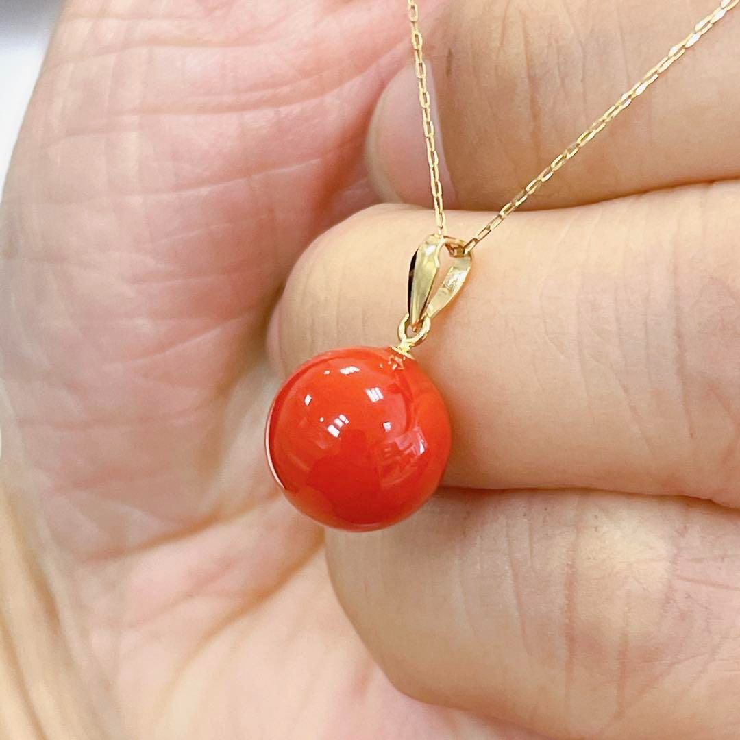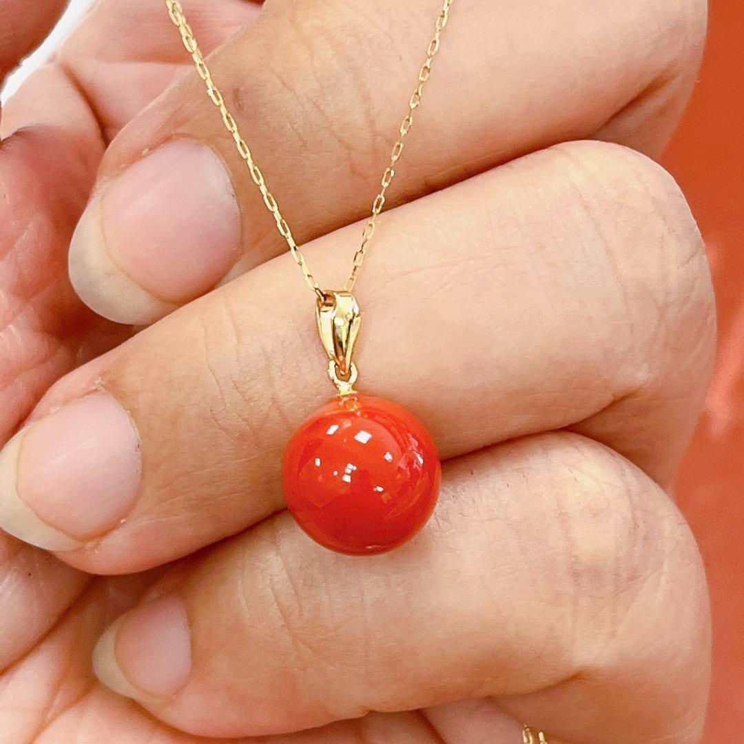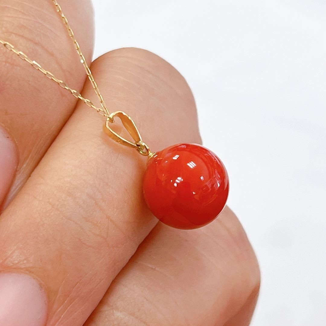K18YG 日本産 赤珊瑚 プチネックレス 10.6mm