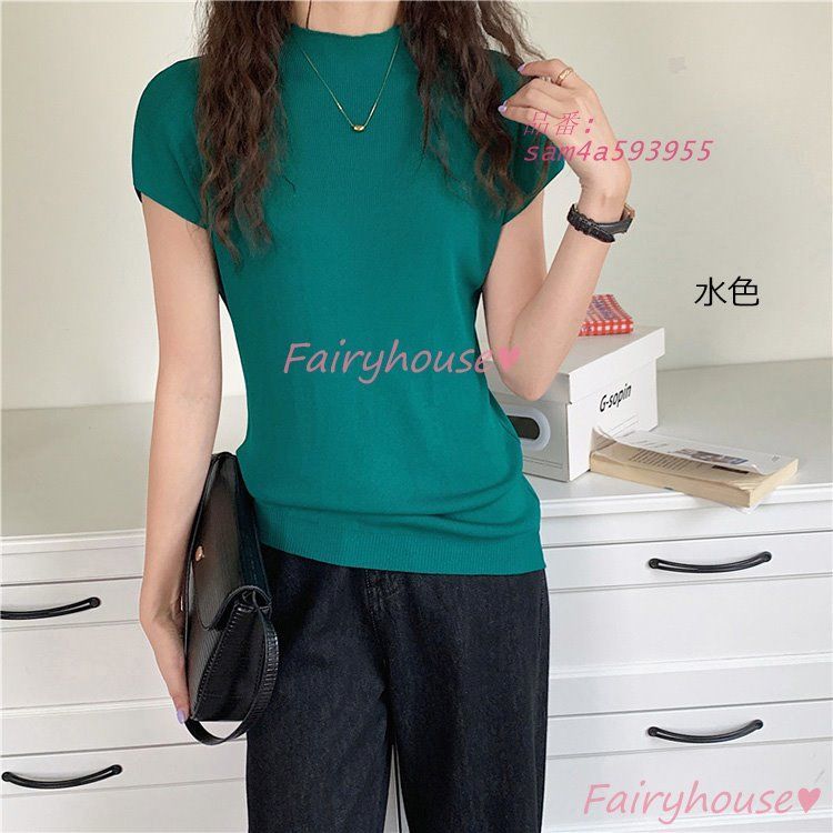 ニットTシャツ レディース 40代 春夏 半袖ニットソー オシャレ レションニットトップス 通勤OL 韓国風 大人 無地 30代 Tシャツ 50代 ショット丈カットソー am4a593955