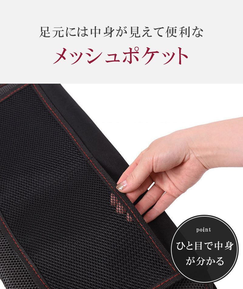 また、足元にはメッシュの収納ポケットが2つ付いているので、よく使うものを収納しておくことも出来ます。