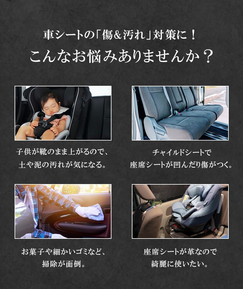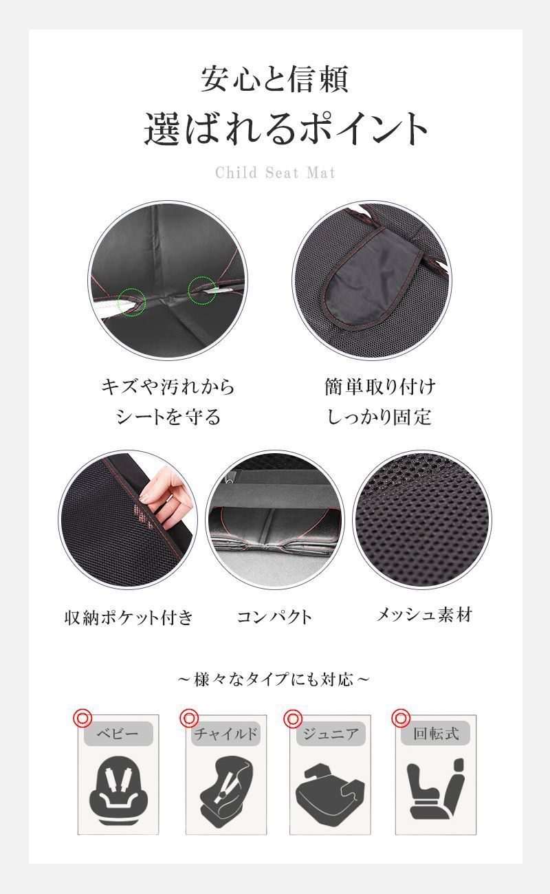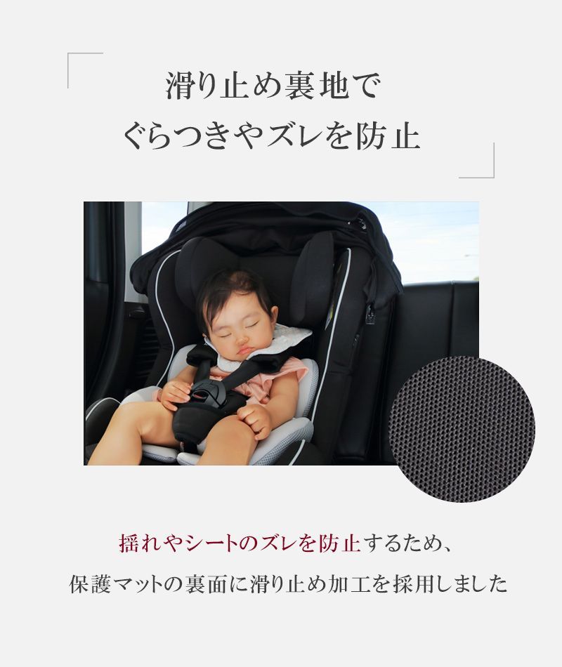 チャイルドシートの下に置くことで、愛車のシートの摩擦や凹みを防ぐことができる保護マットです。