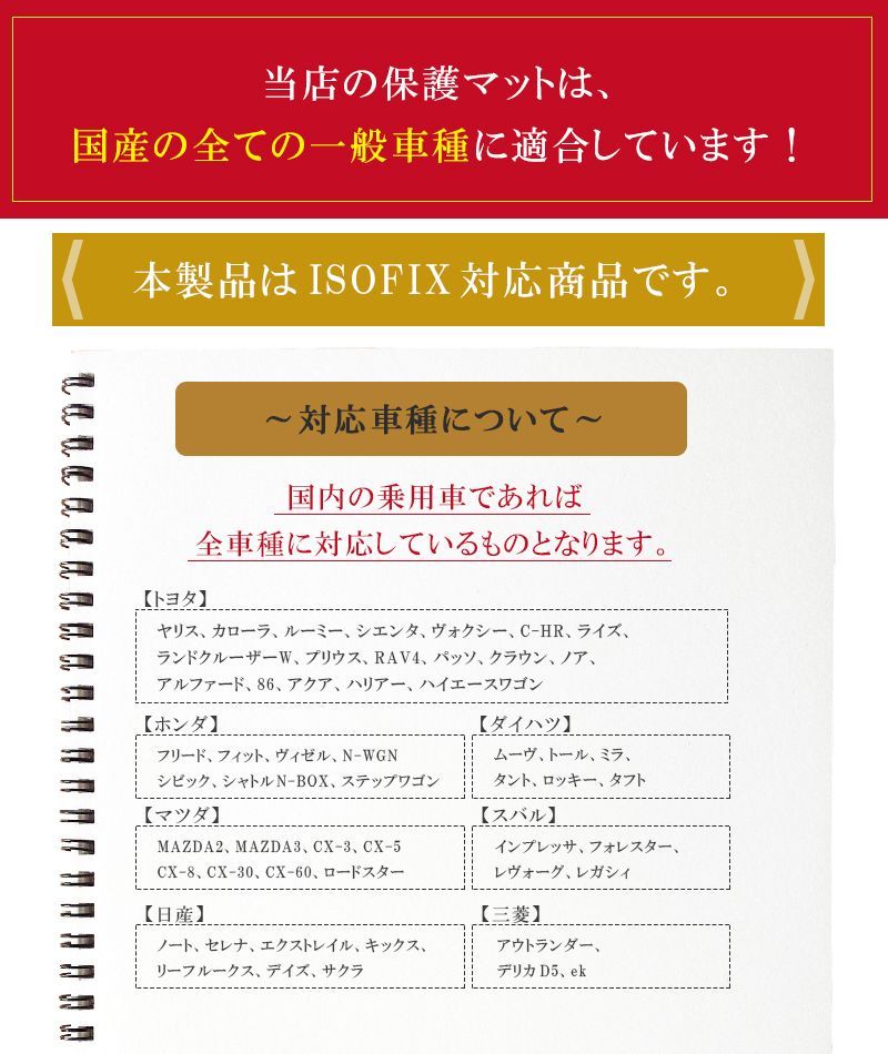 《対応車種について》~弊社が車種対応調べ~国内の乗用車であれば全車種に対応しているものとなります。