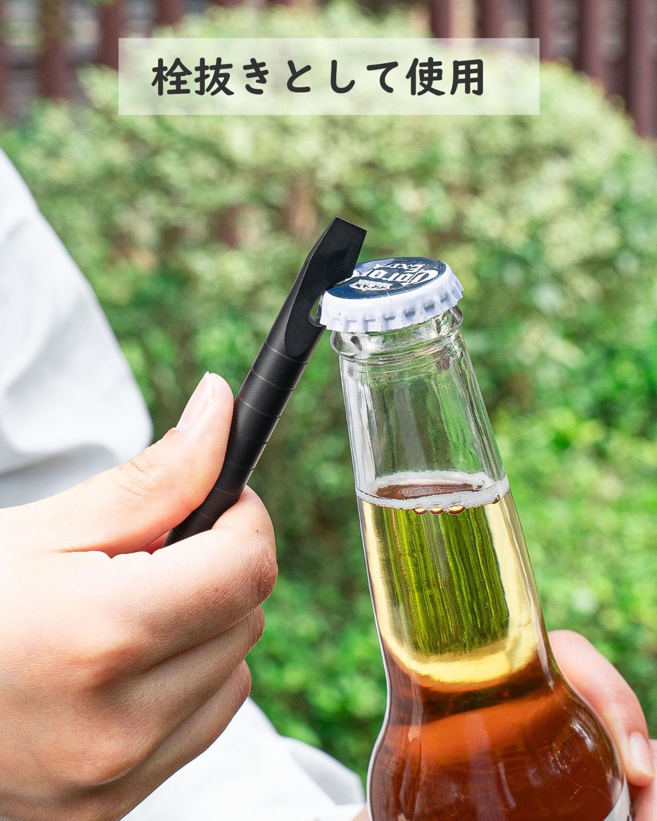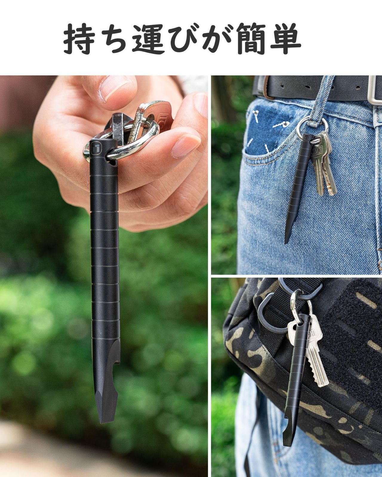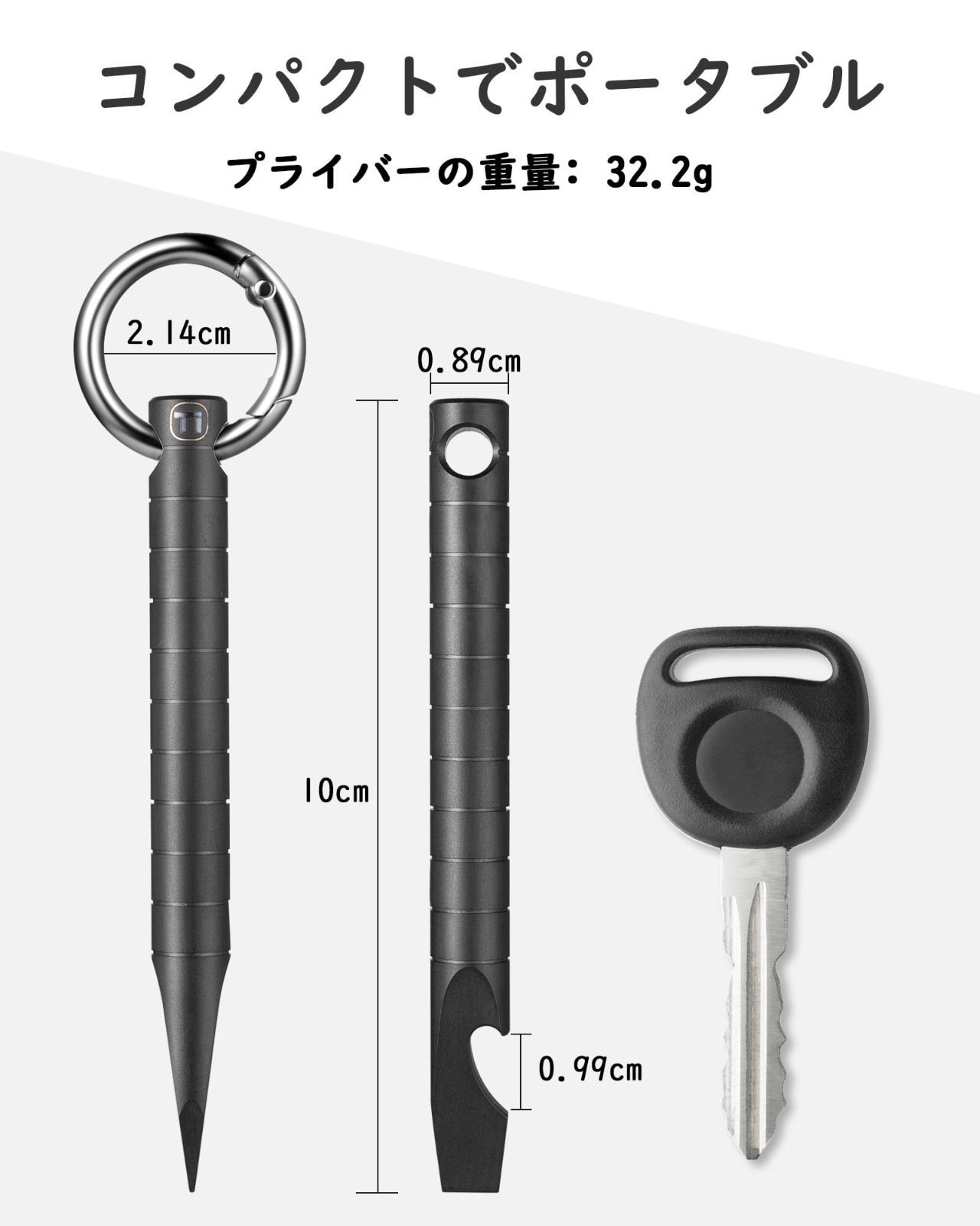 新品 チタン マルチツール バール EDC プライバー 小型 ツール 栓抜き ドライバー定規 ポケッ ツール 日常携帯 (ブラック・Sサイズ+カラビナ リング)