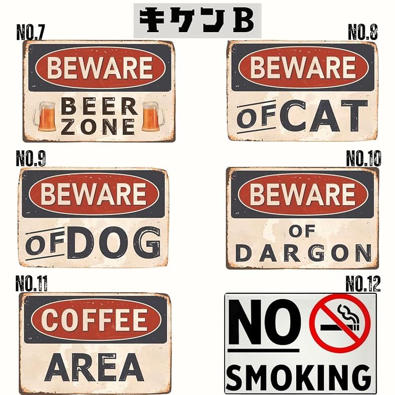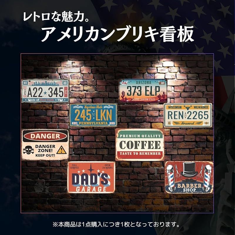 【新品】 レトリカン ブリキ看板 全120種類 アメリカン 雑貨 ナンバー プレート レトロ ガレージ 車 バイク アンティーク インテリア 昭和 ヴィンテージ (キケン(各1枚), NO.13)