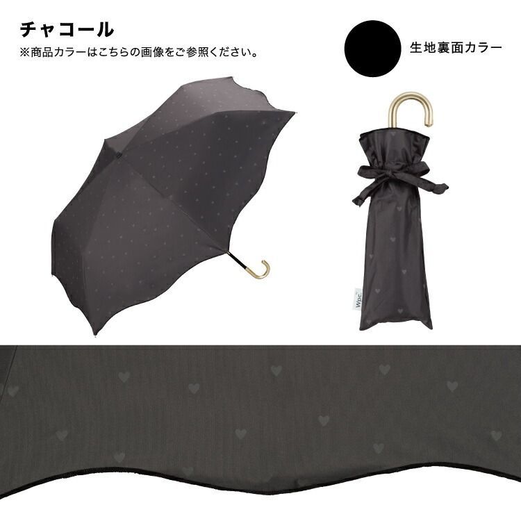Wpc. 遮光ハートメロウ ミニ チャコール 折りたたみ 傘 完全遮光 100%カット 紫外線対策 UV対策 晴雨兼用 折傘