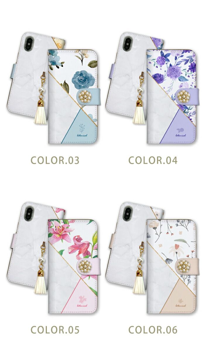 Google Pixel 6 ケース 手帳型 グーグルピクセル6 スマホケース パール ビジュー ストラップ付 花柄 フラワー 植物 大理石 バイカラー ボタニカル 大人 マーブル柄 カラー03