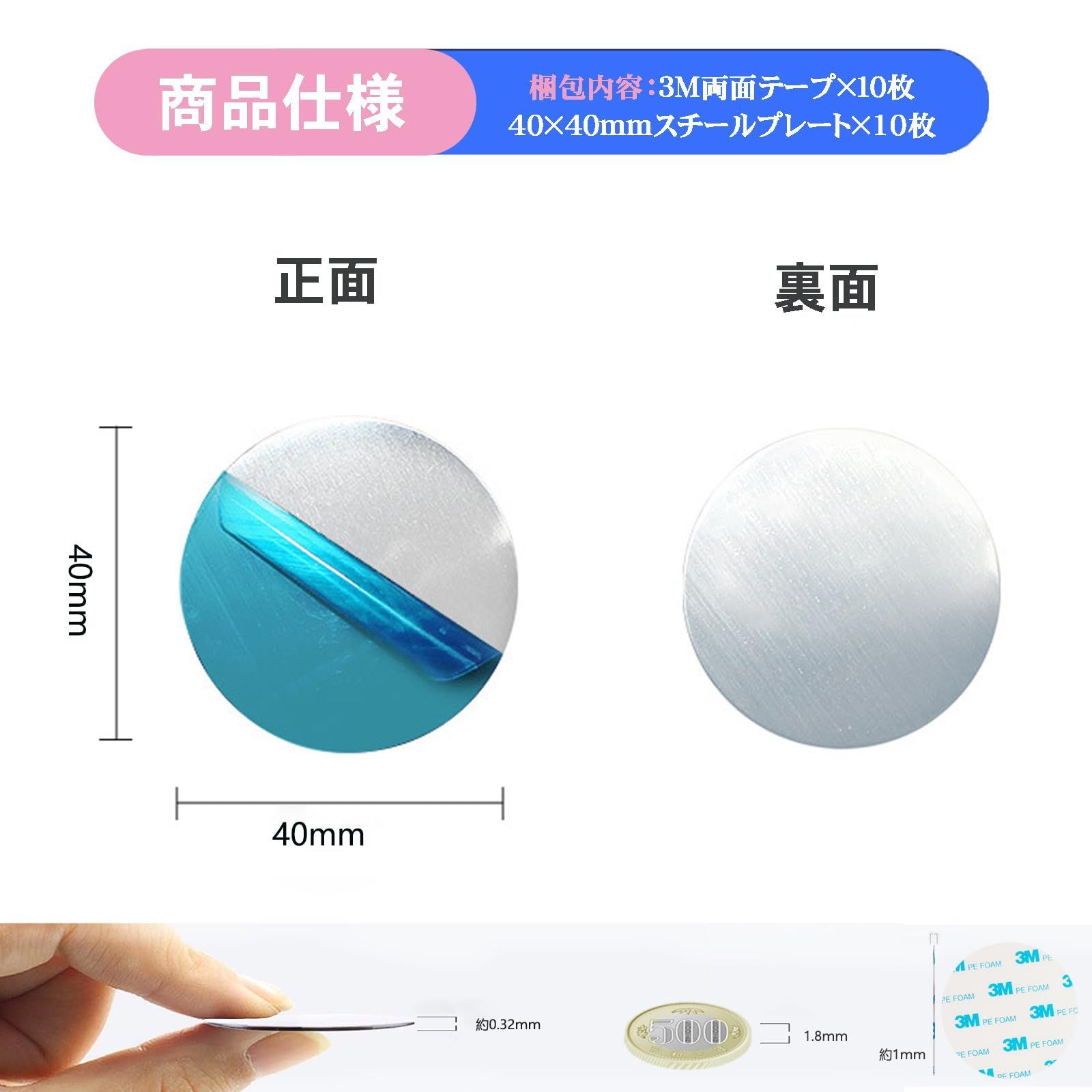 新品 スチールプレート マグネット スチールシート 粘着 3M超強力両面テープ マグネットプレート マグネット吸着用 メタルプレート ステンレス 補助プレート 磁石補助板DIY 薄型 車載マグネットホルダー用 キッチン (10枚 40×40mm)
