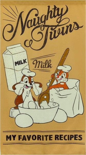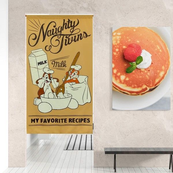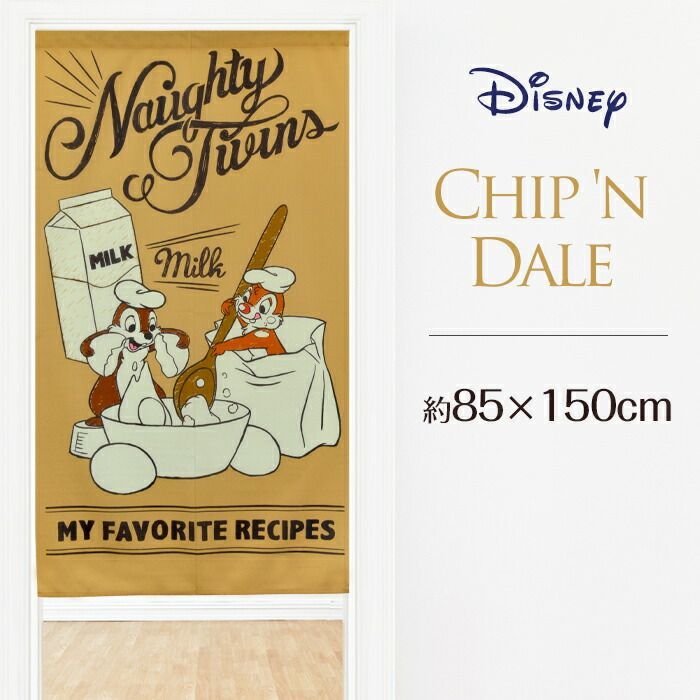 ・チップとデールが仲良くお菓子作りをしている可愛らしいのれんです。