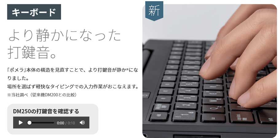 「ポメラ」はとにかくコンパクトサイズ!小型軽量でバッグにもスッと入るので、いつでもどこでも持ち運びが可能です。