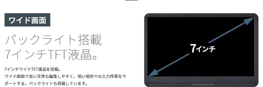 画面:7.0インチTFT液晶、WSVGA(1024×600ドット)、バックライト搭載