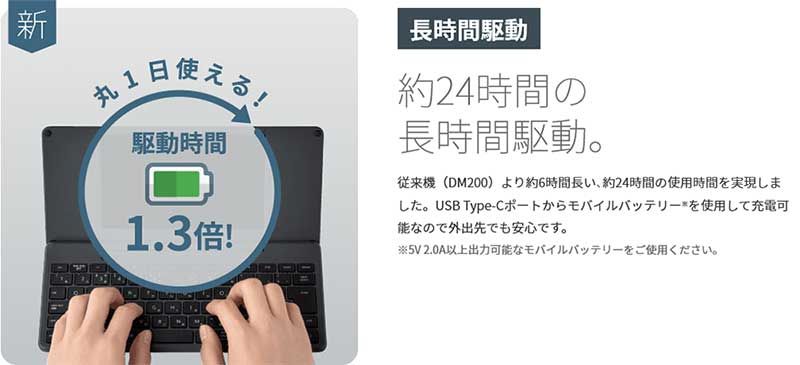 リチウムイオンバッテリー搭載で長時間駆動を実現し、外出先でも安心してご使用いただけます。