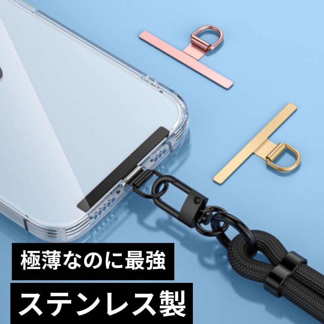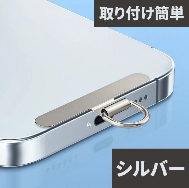 iPhone スマホ ストラップホルダー ステンレス製 挟むだけ 簡単 装着 薄型 0.4mm 耐久性 高 強化 金属 ストラップホール 落下防止 首掛け 対応 ケース そのまま 使用 便利 取り外し簡単 シルバー 軽量 スマホアクセサリー