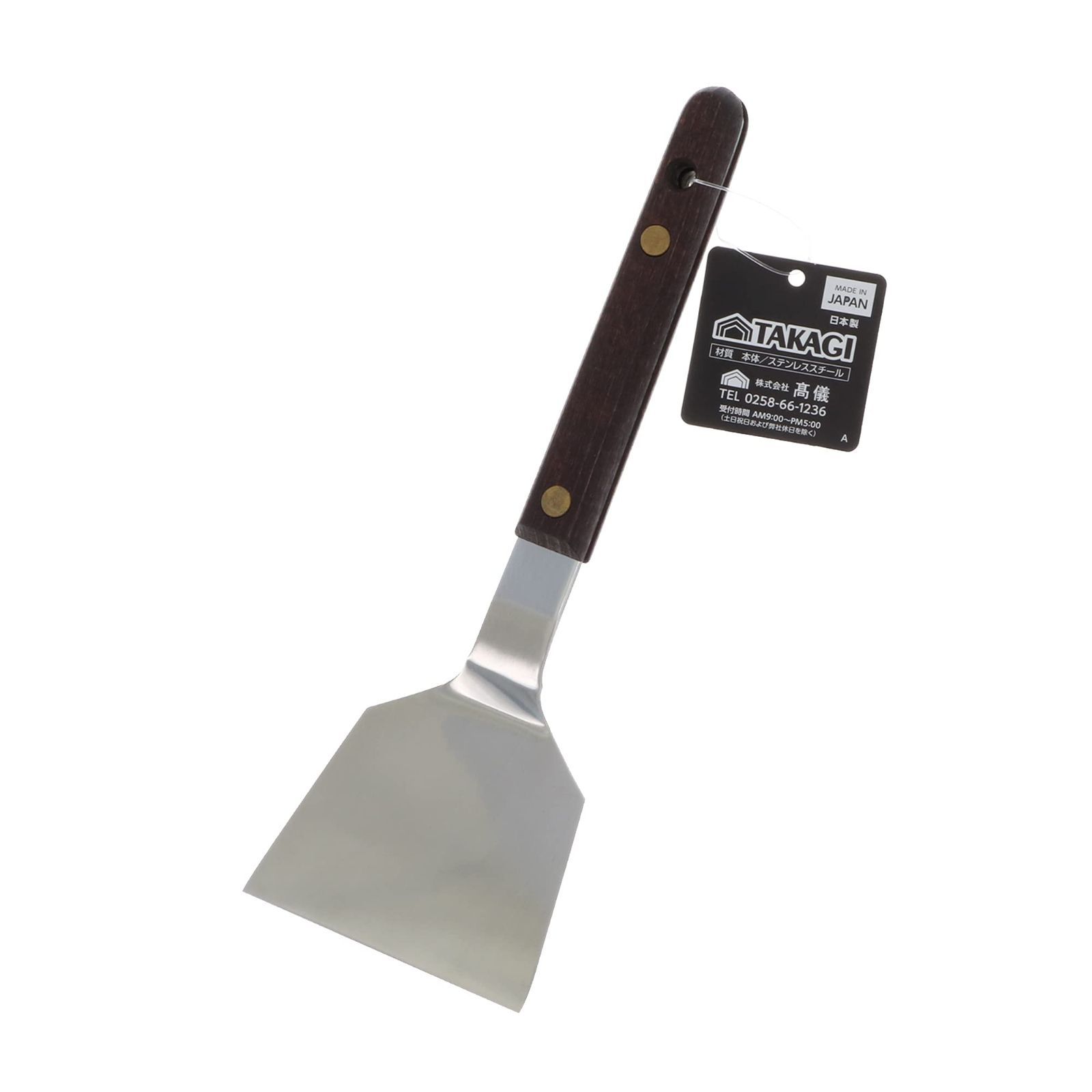 新品 髙儀(Takagi) ステンレス ローズ柄 起こし金 小 ヘラ 持ちやすい 木柄 お好み焼き 焼きそば 鉄板焼きなどに 返し へら シルバー 日本製 高儀 たかぎ TAKAGI