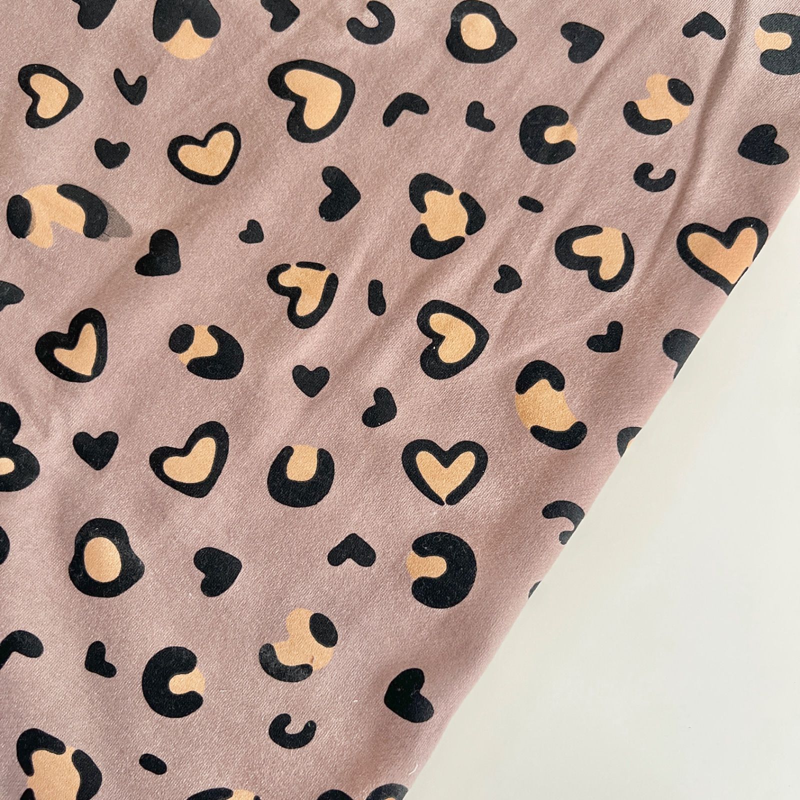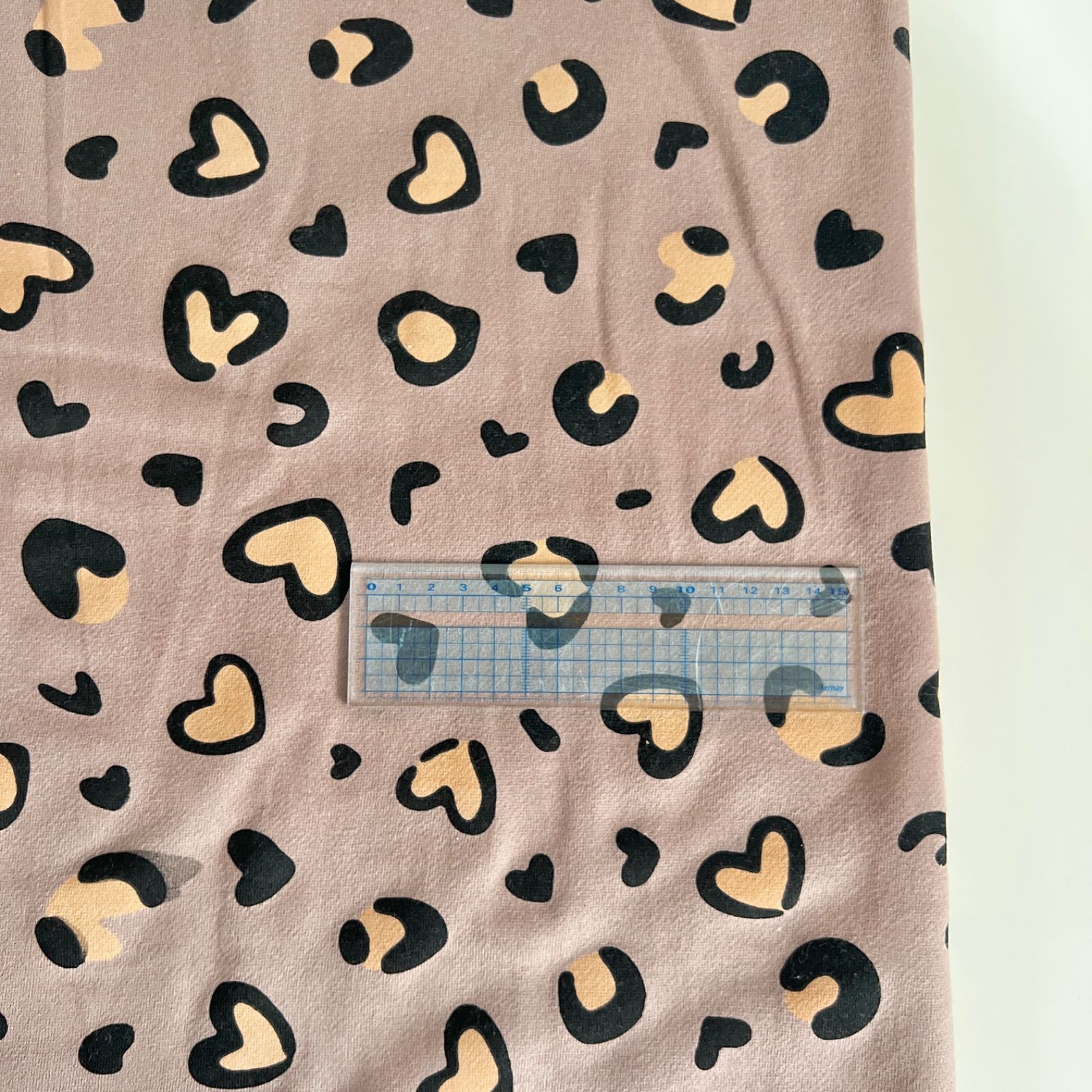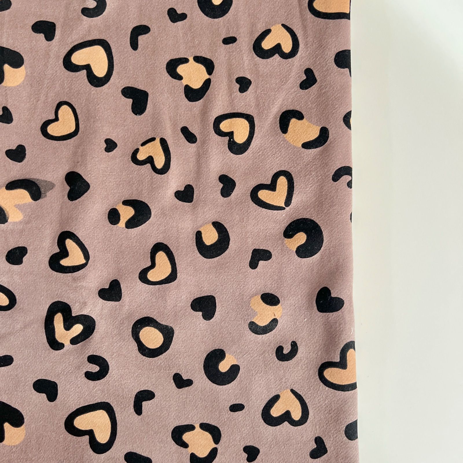 裏起毛ニット生地(ハートのレオパード・モカ)韓国生地