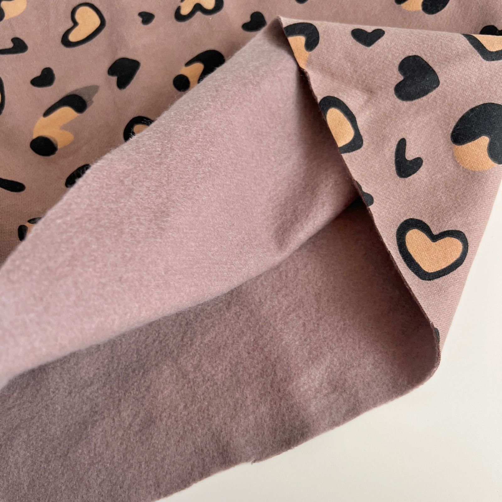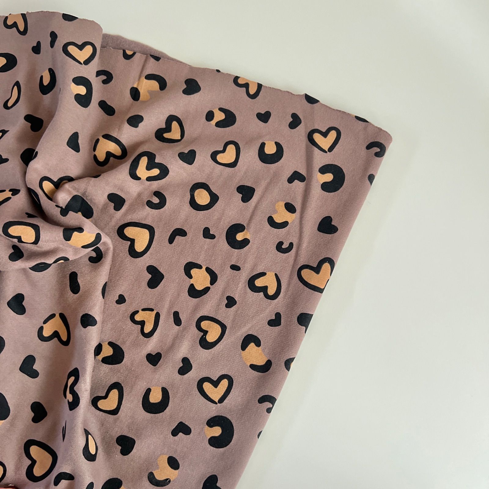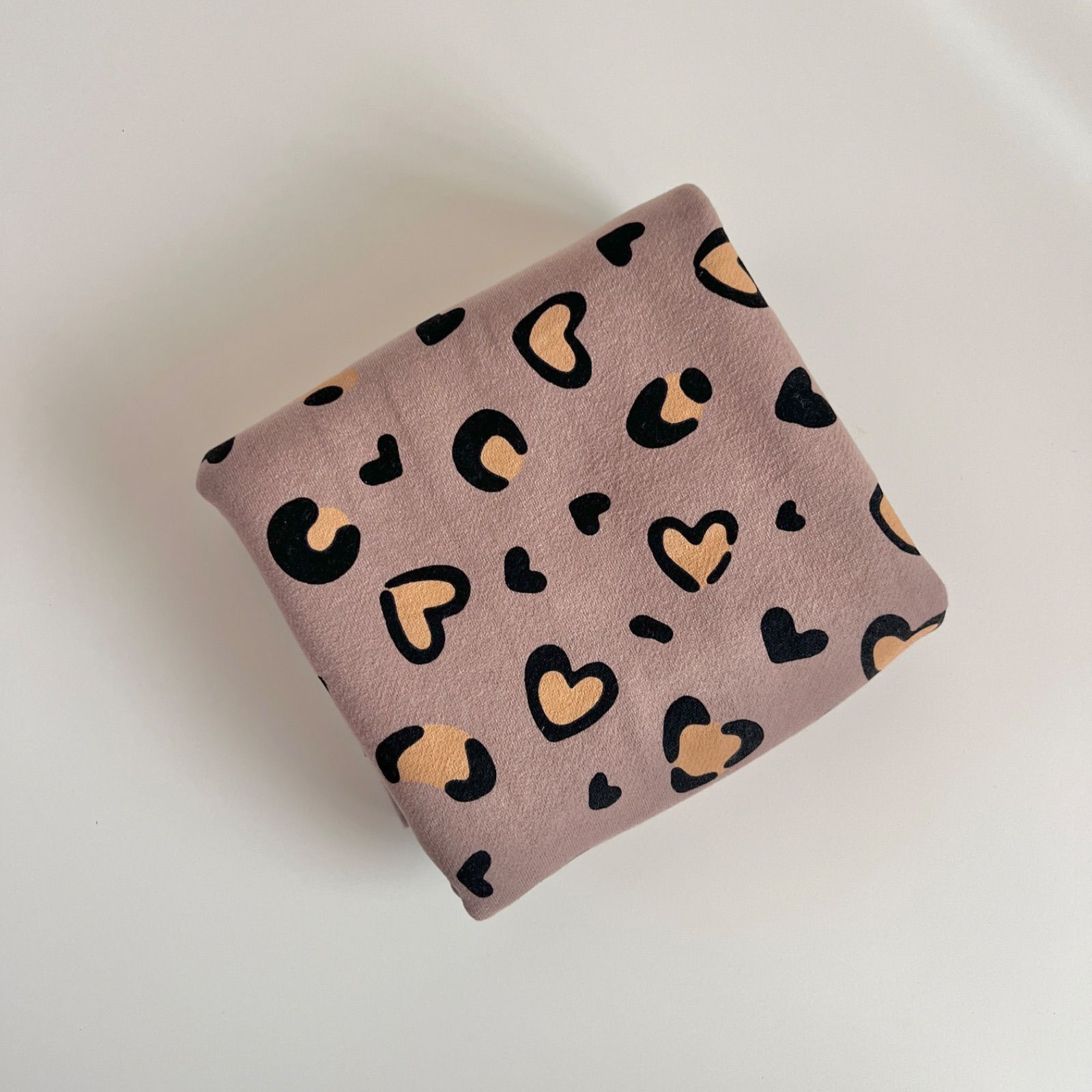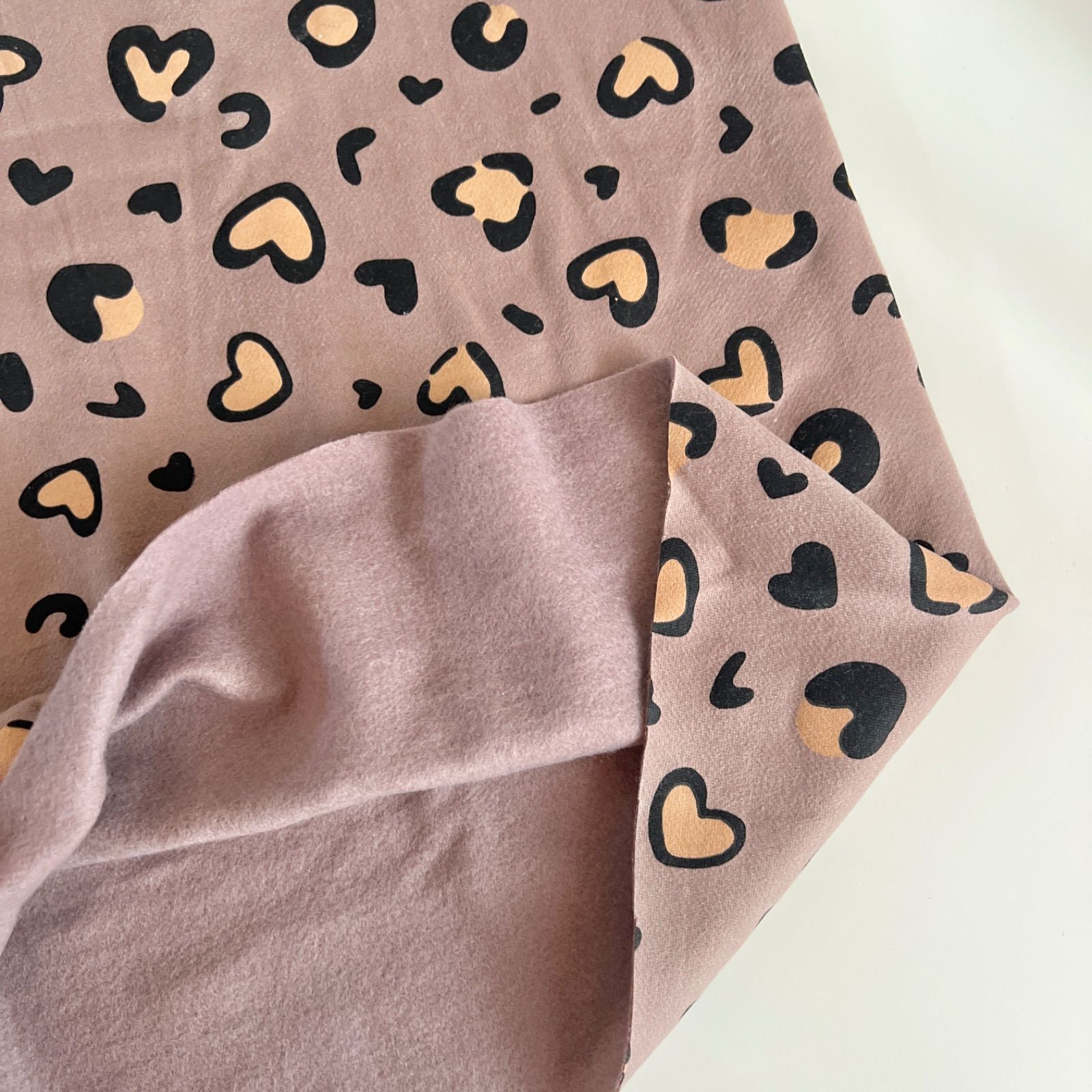 裏起毛ニット生地(ハートのレオパード・モカ)韓国生地