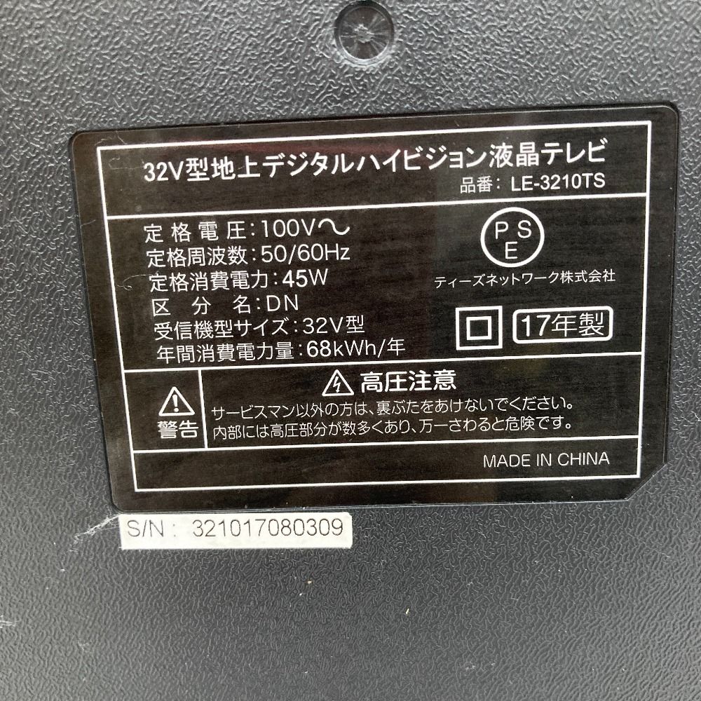 03wm15705/【動作品】TEES 32V型 デジタルハイビジョン液晶テレビ LE-3210TS 2017年製 リモコン欠品 HDMI2系統/USB外付HDD対応 ティーズネットワーク 32インチ