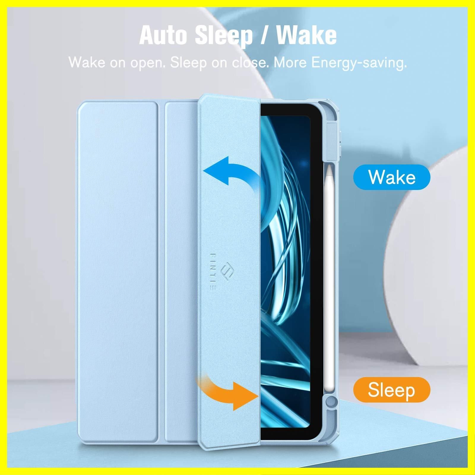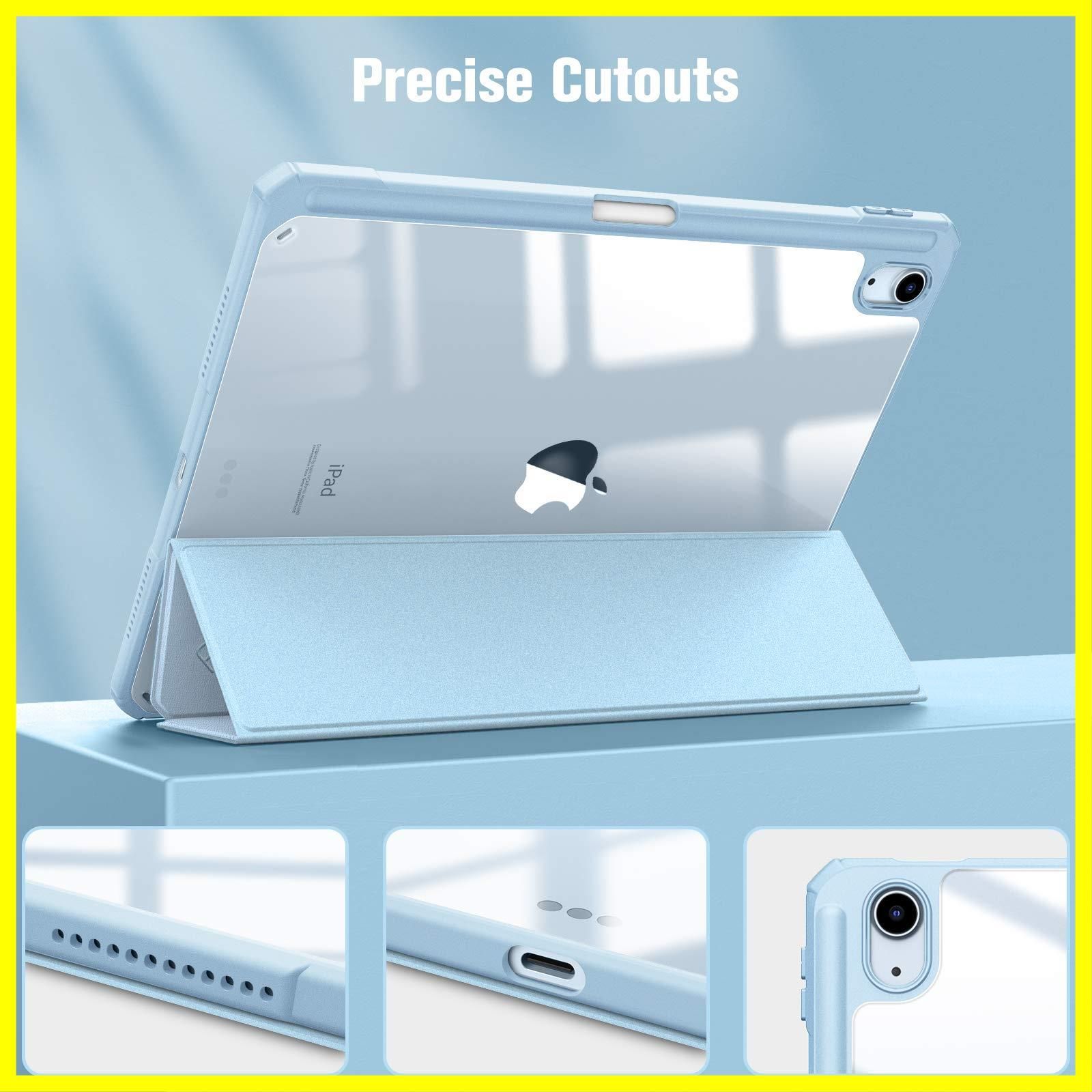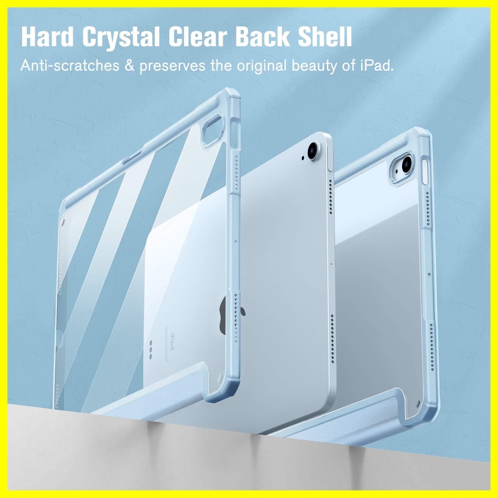 Fintie iPad Air 11インチ ケース M3 (2025 第7世代) / M2 (2024 第6世代) / Air 5/4 ケース 2022/2020 10.9 インチ 透明バックカバー Apple Pencil 収納可能 ワイヤレス充電対応 三つ折スタンド スリープ機能 軽量 薄型 傷つけ防止 PU合成レザー TPU(スカイブルー)