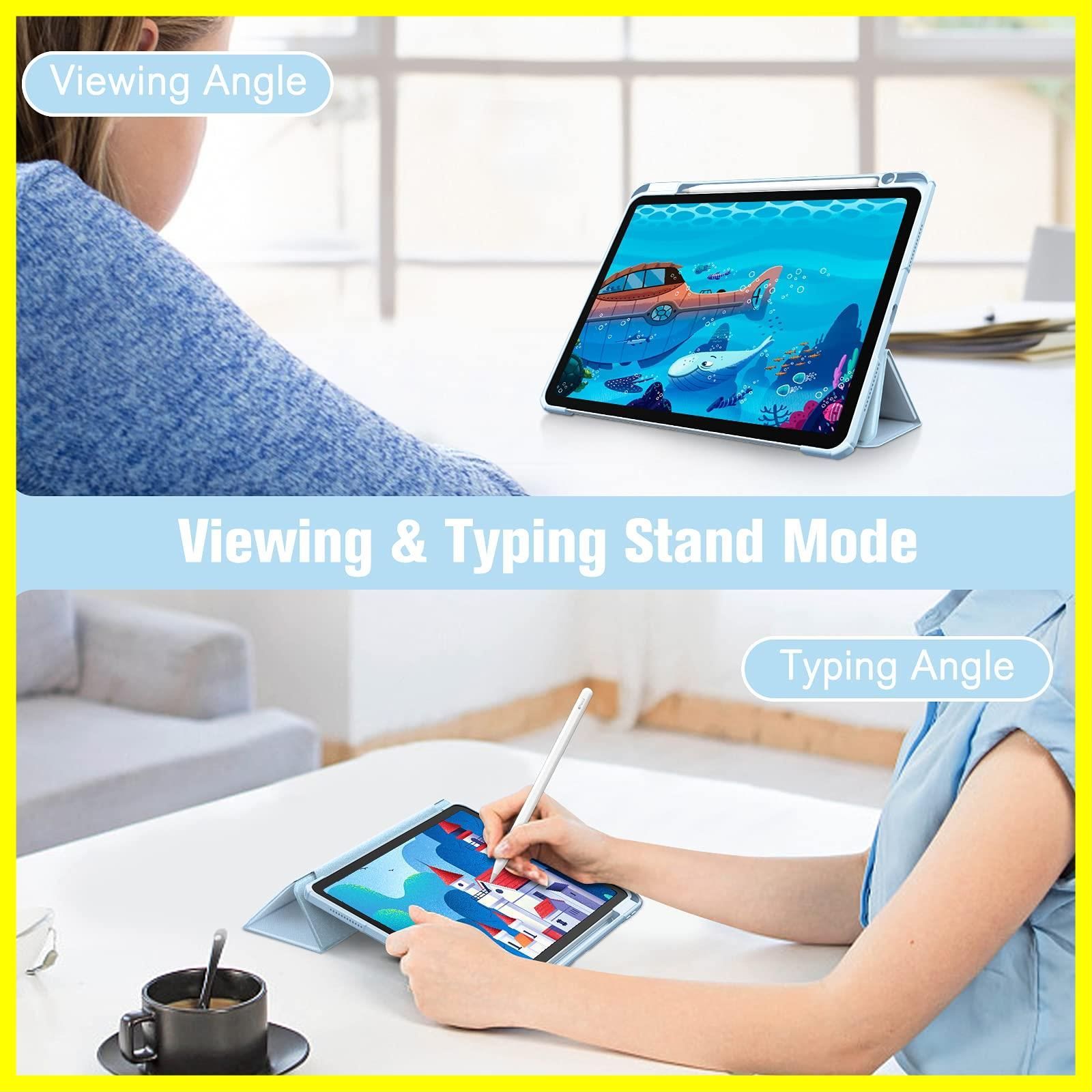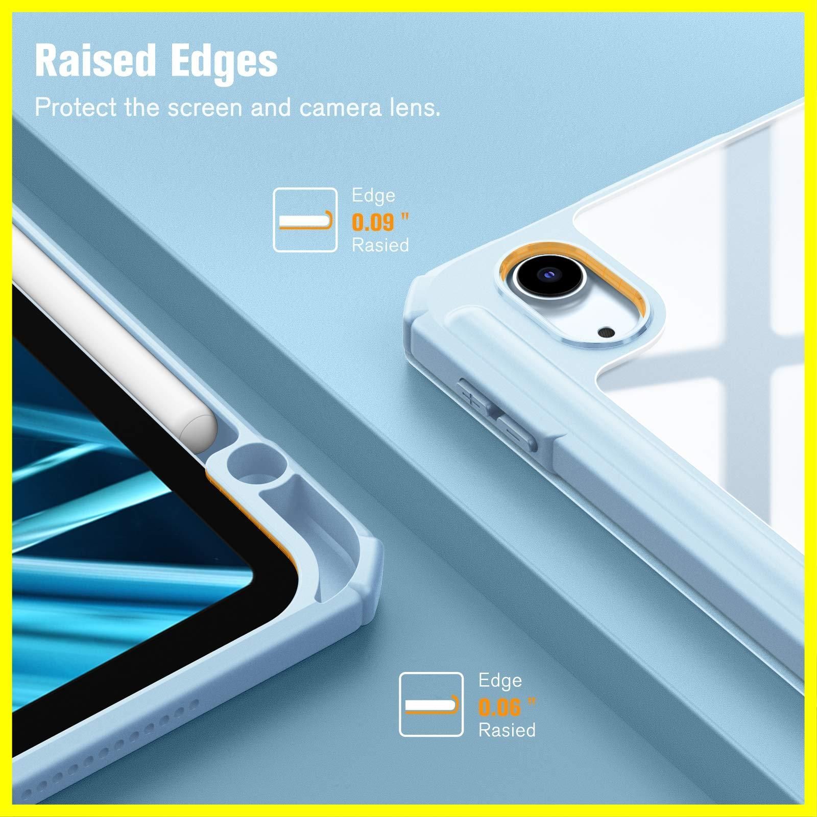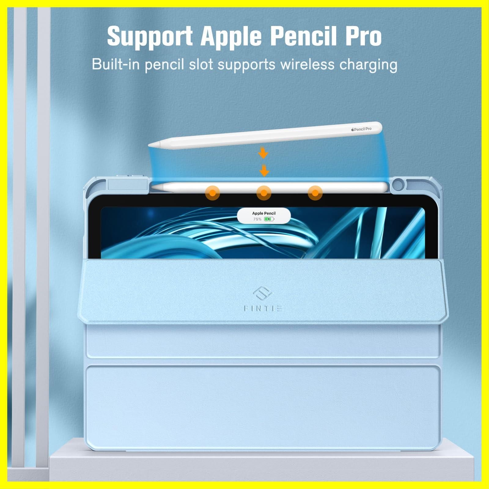 Fintie iPad Air 11インチ ケース M3 (2025 第7世代) / M2 (2024 第6世代) / Air 5/4 ケース 2022/2020 10.9 インチ 透明バックカバー Apple Pencil 収納可能 ワイヤレス充電対応 三つ折スタンド スリープ機能 軽量 薄型 傷つけ防止 PU合成レザー TPU(スカイブルー)