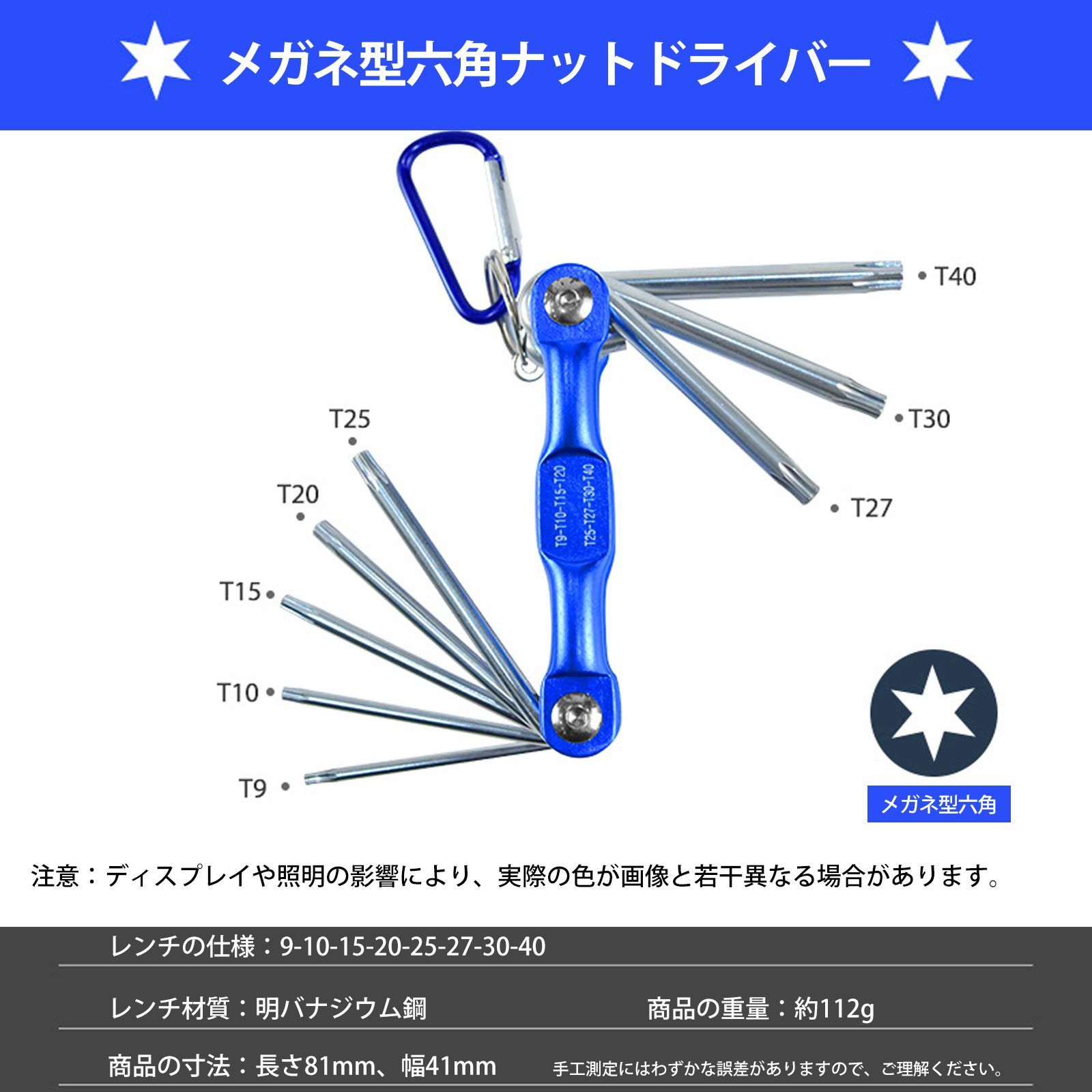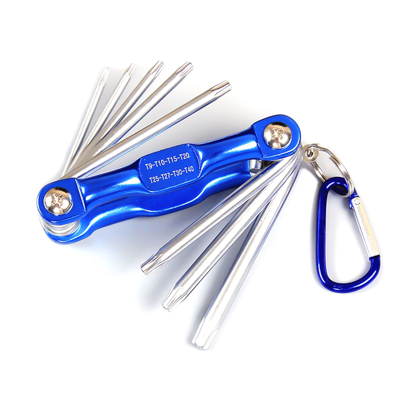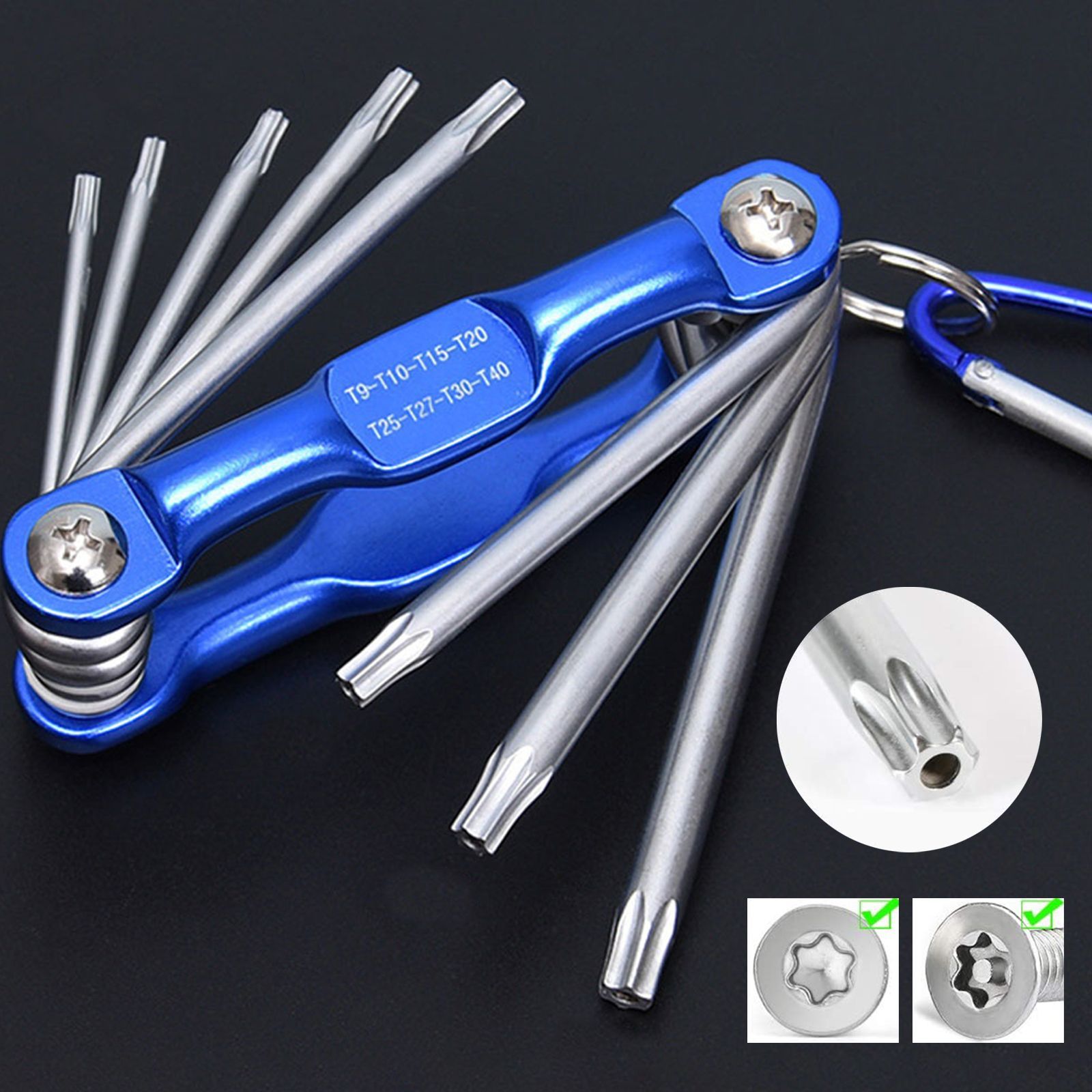 【8in1】星型ドライバー トルクス レンチ 星型レンチ トルクスドライバーセット 六角棒レンチセット 折りたたみ式 8in1 T9 T10 T15 T20 T25 T27 T30 T40 精密 多機能 特殊ドライバー いじり止め対応ドライバーセット(8本組)