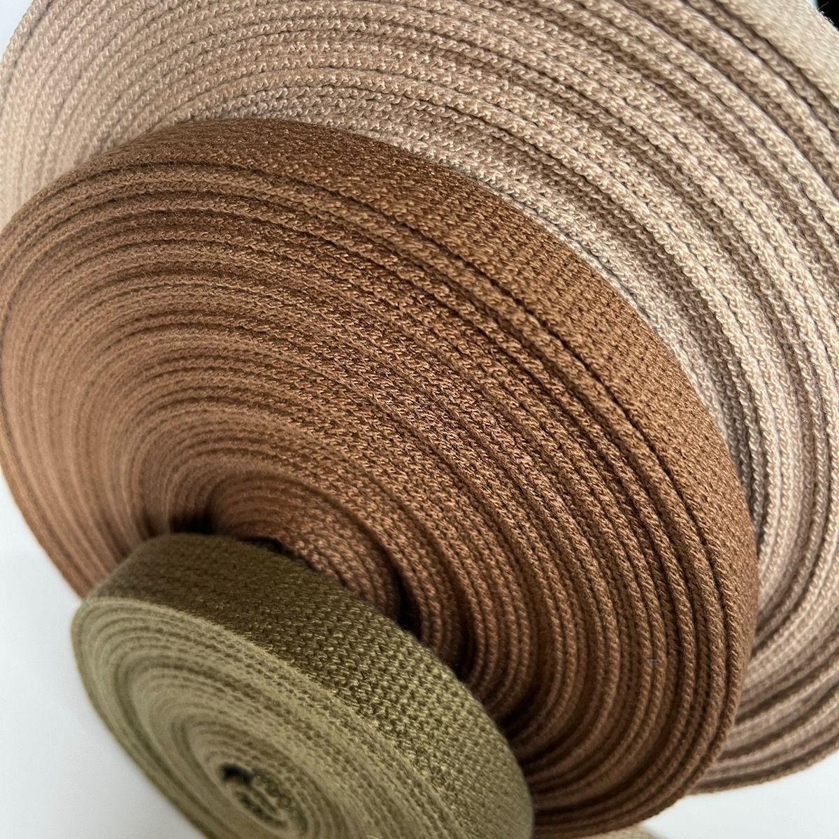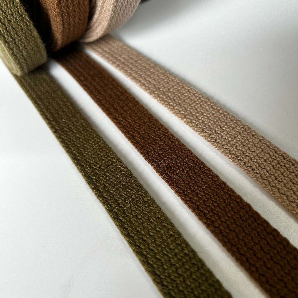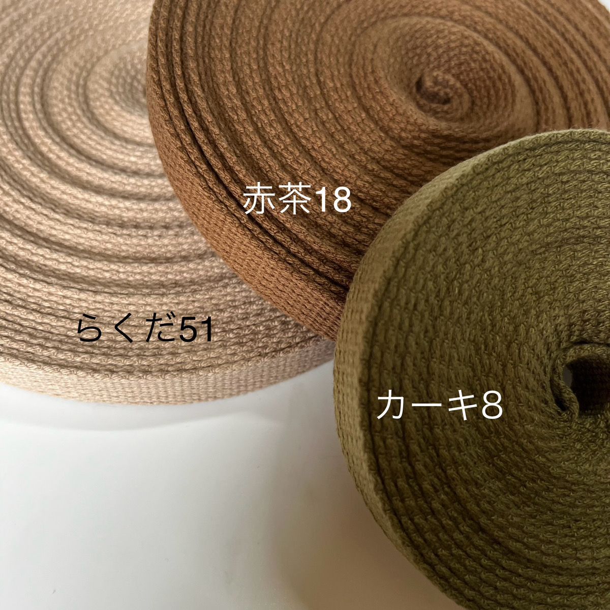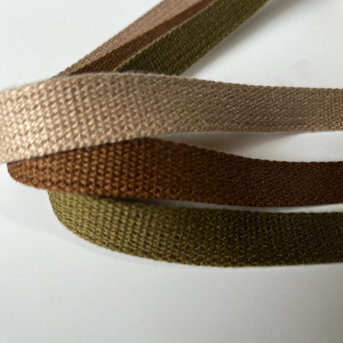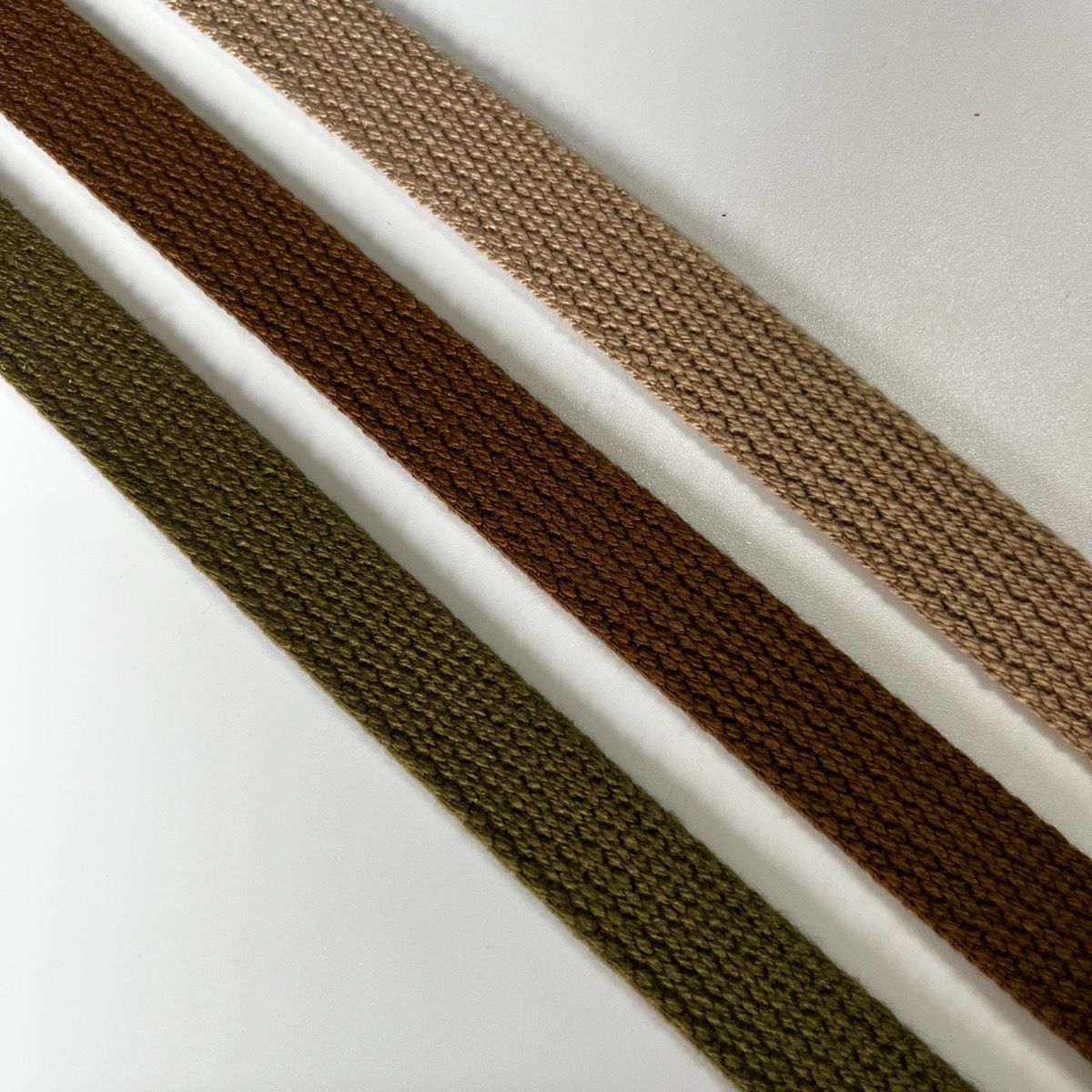 (15㎜巾/2㎜厚×5m/らくだ・赤茶・カーキ)トジ織り 日本製 アクリルテープ 新入園 新入学 手提げ袋 シューズ袋 カラーテープ ハンドメイド PP コール 流綾 コットン
