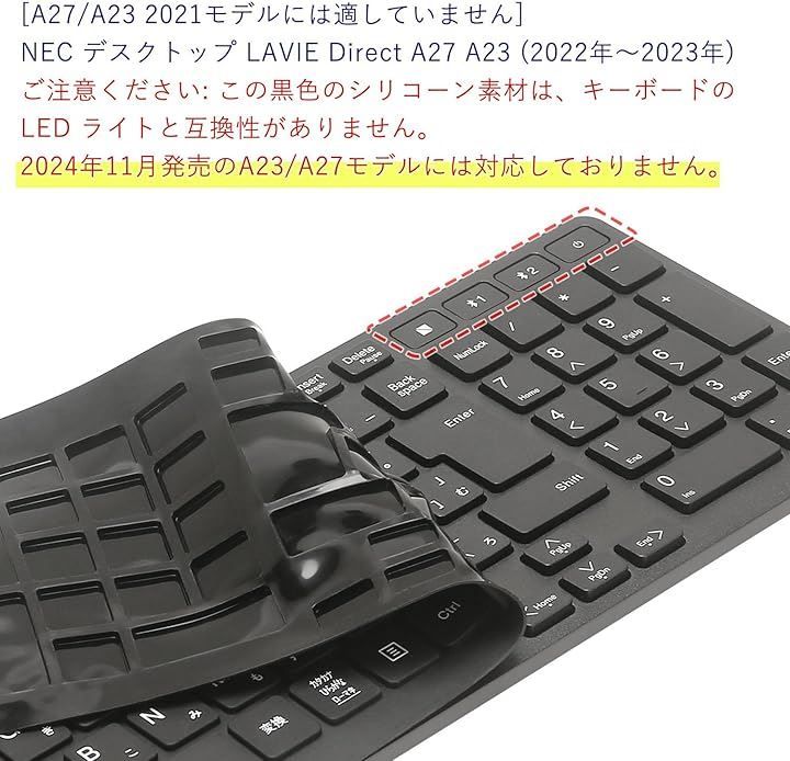 Digi-Tatoo キーボードカバー for NEC LAVIE Direct A23 / A27 2022~2023発売 用 柔らかいシリコーン素材 防水防塵カバー 保護カバー ブラック (ブラック, ブラック (2022~2023モデル))
