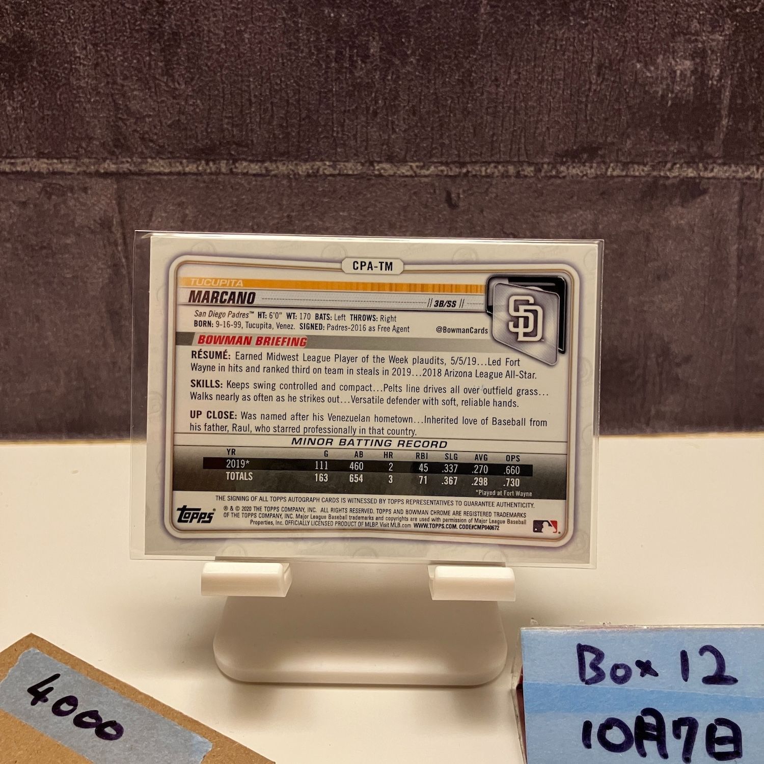 2020 Topps Bowman Chrome Tucupita Marcano 直筆サインカード SAN DIEGO PADRES カード