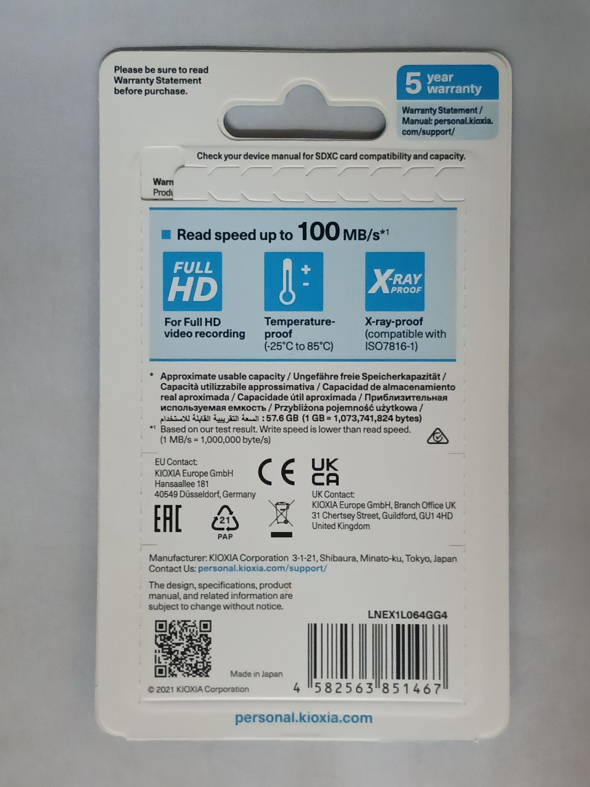 【新品・未開封】64GB SDXCカード SDカード KIOXIA キオクシア EXCERIA Class10 UHS-I U1 R:100MB/s