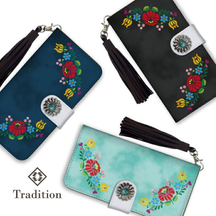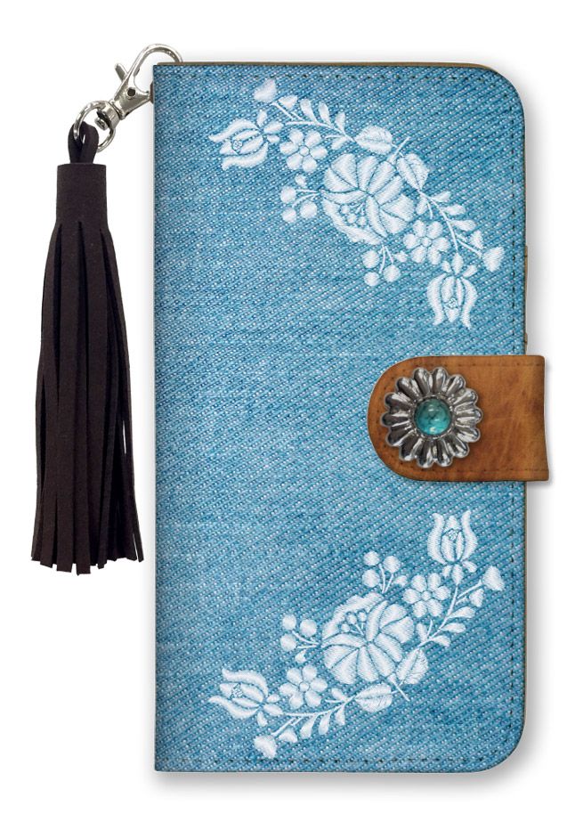 Xperia 5 V SO-53D SOG12 ケース 手帳型 エクスペリア 5 V SO-53D SOG12 スマホケース フリンジ ストラップ付 コンチョ 可愛い 花柄 フラワー 刺繍 プリント タッセル デニム柄 ピンク イエロー カラー09