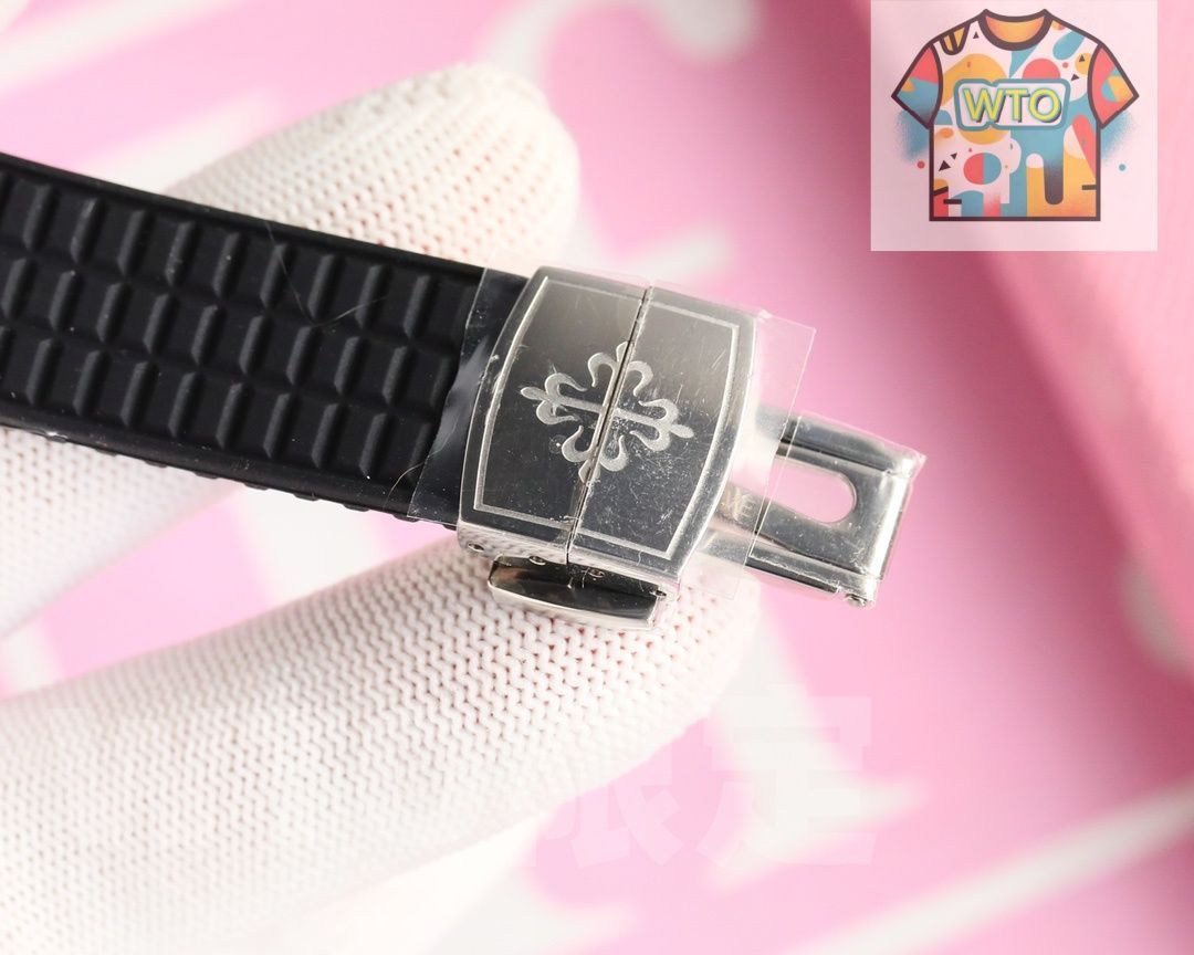 ストラップは「手雷」独自のフッ素ゴムバンドを採用し、独特の網目模様デザインが運動感とファッション性を強調。トップクラスの折りたたみ式押しボタンクラスプを搭載し、クラスプの研磨は非常に緻密で、開くと内側にパテックフィリップの英語表記が刻まれています。ルーペで観察しても極めて鮮明で、オリジナルの製造技術を完全に受け継いでいます。