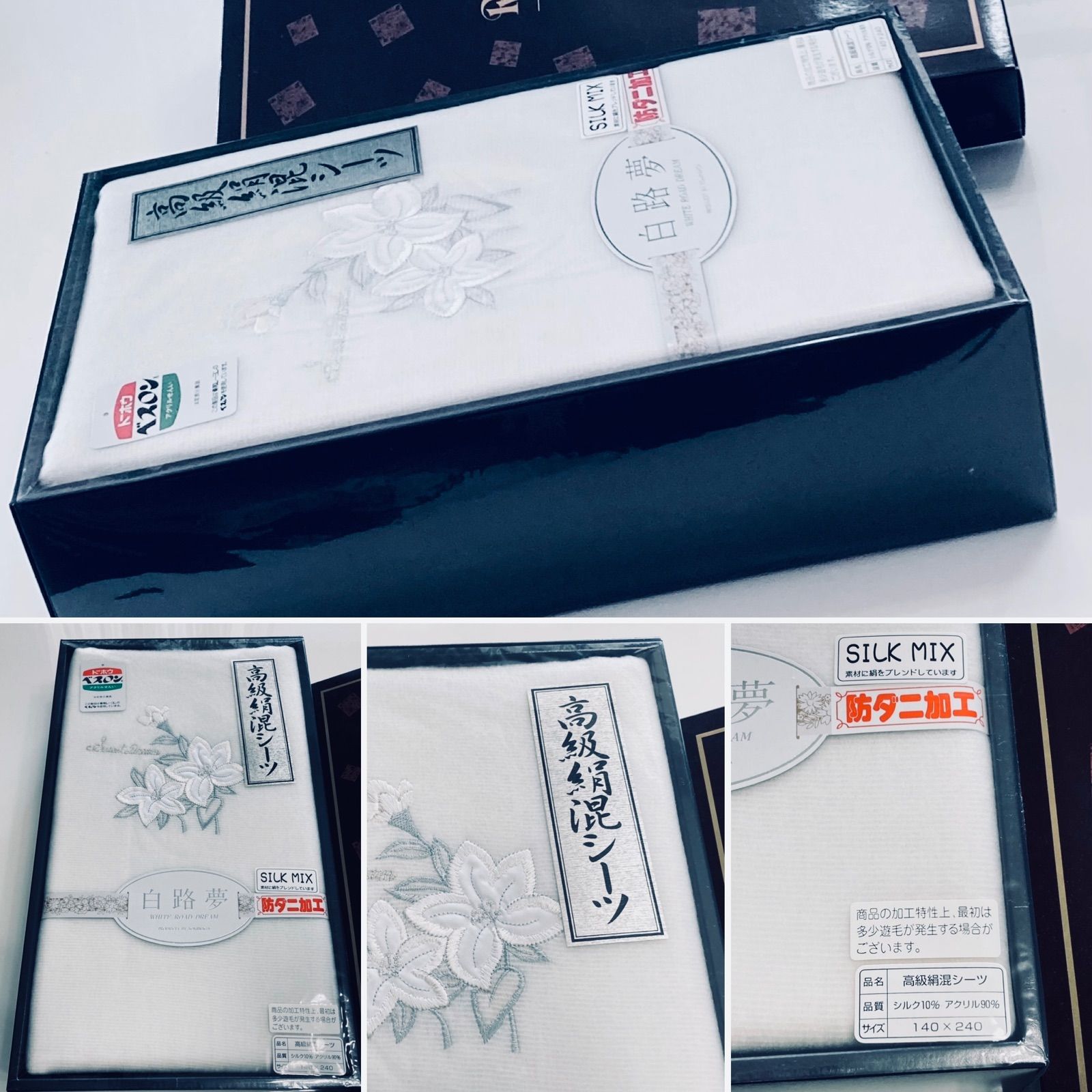 シルク 高級絹混シーツ【白路夢】防ダニ加工 140×240 新品