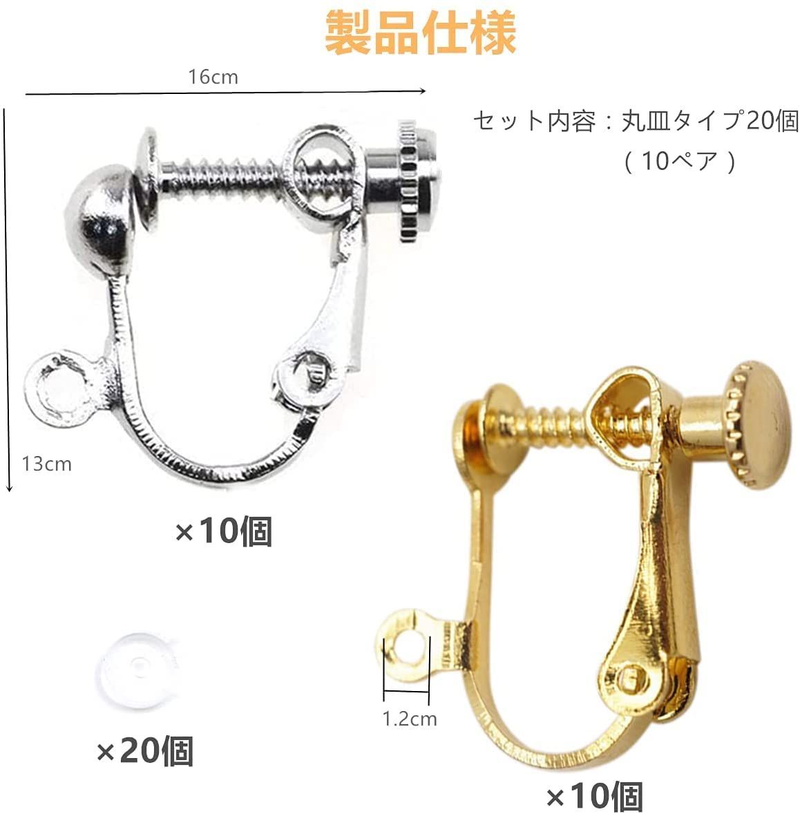イヤリングパーツ 20個入 丸玉タイプジュエリー イヤリング金具 ネジバネ式 ピ