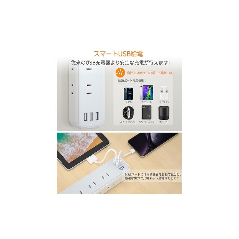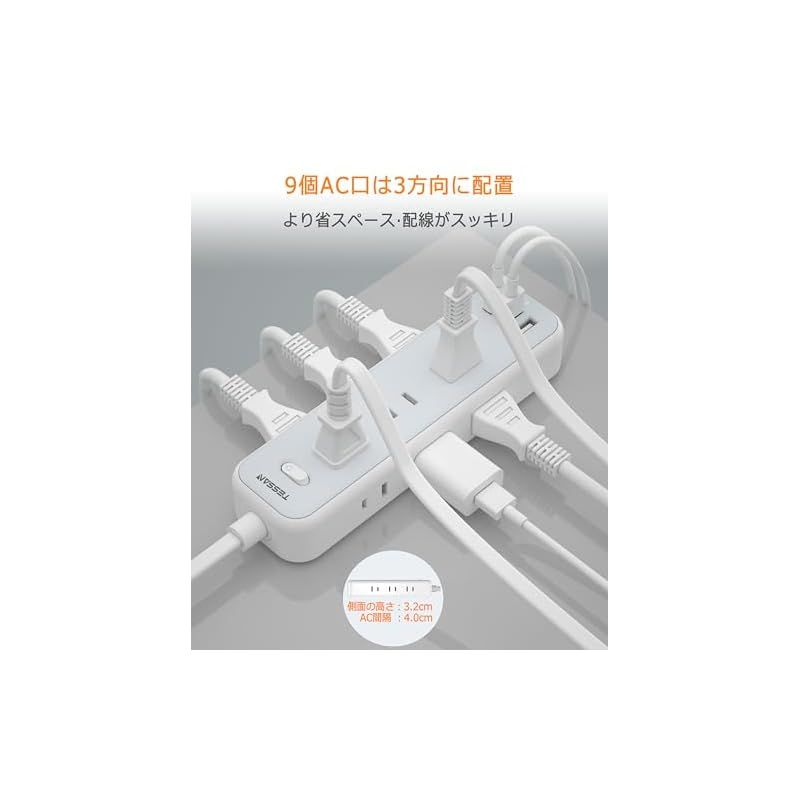 当店では他サイトにも商品を販売しているため まれに売り切れや取り寄せ中となる場合がありますがご了承ください。     【商品概要】 「一台12役・電源タップ」:これはAC差込口9個口とUSBポート3口が一体となったのUSBタップです。まとめて12台の機種が同時に充電で、コンセント不足が解決できます。USB接続機器はデジダル製品の入力電流を自動検知し、最適な電流を送ります。コンパクトな設計の上に機能性もよく 実現します! 「干渉しづらいデザイン」:ACコンセントを3方向に分配して、どちら側からも気軽にケーブルを挿すことができます。ACアダプタが同時挿せでも互いに干渉せず。AC出力は最大1500W(125V/15A)、ほとんどの家電製品が使用可能! 「使用者の便利に配慮」:この延長コードは日本のために研究し、設計されています。180°スイングプラグを採用して、狭い場所でも配線しやすい。使い勝手のいい2mケーブルを採用し、コンセントから少し離れた場所でも利用できます。家庭、オフィス、会議室、パーティーなどにも大活用できます。 「壁掛け用・卓上に」:コンセントタップは壁等に仮固定できるフック穴付き、壁にかけてご利用できます。省スペースで、配線もスッキリになります。テーブルタップの底の四角にゴム製の滑り止めがついており、卓上で安定感があります。両立な使い方あり、お客様に心地よい生活を与えます。 「安全性ある・タコ足配線」:一括集中スイッチ付きで、接続した機器の電源をまとめてON/OFF可能。ブレーカーを内蔵しており、許容量をオーバーした場合ブレーカーが作動し事故を防止。それに、電源確認ライト付き、通電中かは一目瞭然。 【商品説明】 これは9個AC差込口とUSBポート3口が一体となったの12役USBタップ、沢山な機種が同時に充電で、コンセント不足が解決できます。AC口が天面・両側面に分配されて、どちら側からも気軽にケーブルを挿すことができます。2mの延長コード付きで、コンセントから少し離れた場所でも利用できます。家庭、オフィス、パーティーなどにも大活用できます。USBポートが接続した機器に最適な給電をする「自動識別IC」が搭載されていますので、従来のUSB 充電器より安定な充電が行えます、単一ポートあたり最大出力2.4A。壁掛けや卓上に両立な使い方あり、省スペースで、配線もスッキリになります。さすがおしゃれなコンパクト電源タップ、機能的でデザイン性の高い。 【商品詳細】 ブランド:TESSAN 商品種別:電源タップ 商品名:延長コード 2m 電源タップ usb付き コンセントタップ 9個AC口 3個USB-Aポート TESSAN テーブルタップ 電源コード OAタップ たこあしコンセント タコ足配線 マルチタップ一括スイッチ付き 壁掛け/卓上に 製造元:TESSAN 商品番号:TS-709 商品内容:2m&usb-a 色:グレー 商品タイプ:usb-a 【当店からの連絡】     最後までご確認頂き誠にありがとうございました。 上記をご確認頂き、ご購入いただけましたら幸いです。