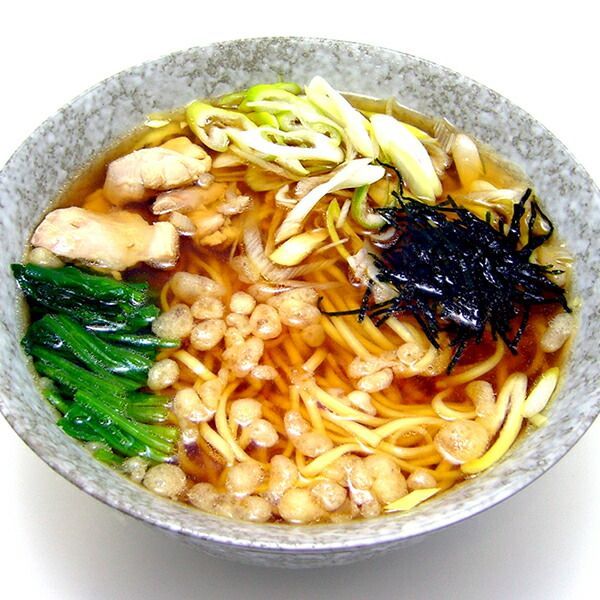 めんをもう一度湯通してから丼にもり、鶏肉・ねぎ等をのせて添付のスープを300ccの熱湯でうすめ、かけてお召し上がりください。