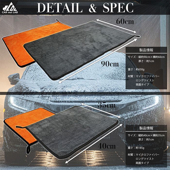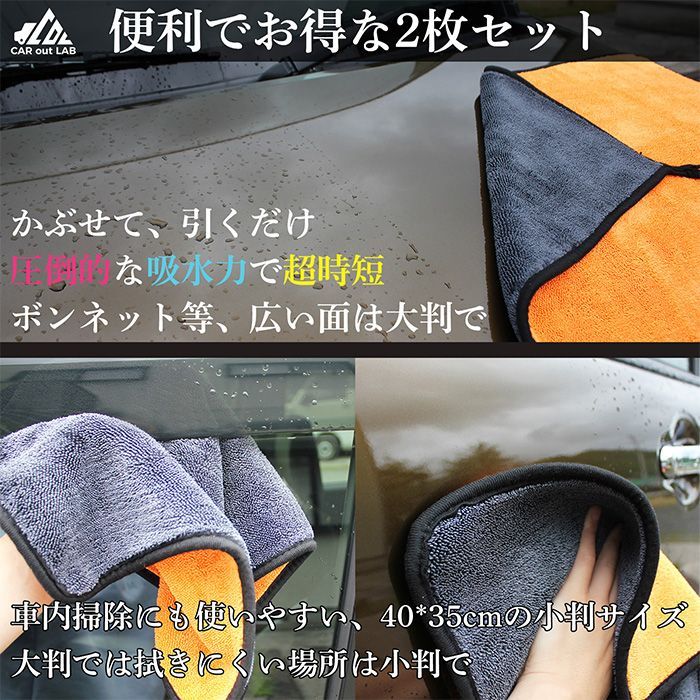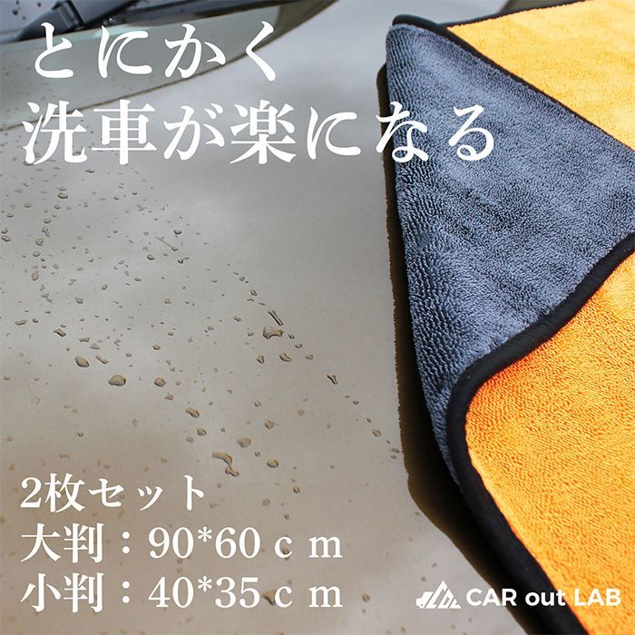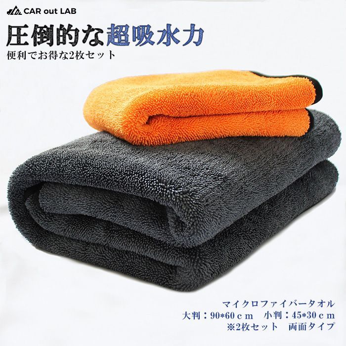 洗車タオル マイクロファイバー クロス 超吸水 大判&小判 2枚セット