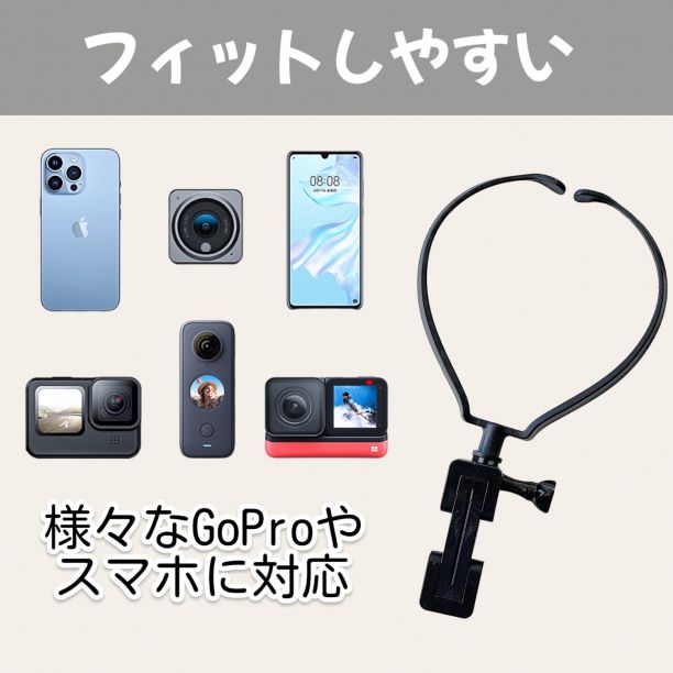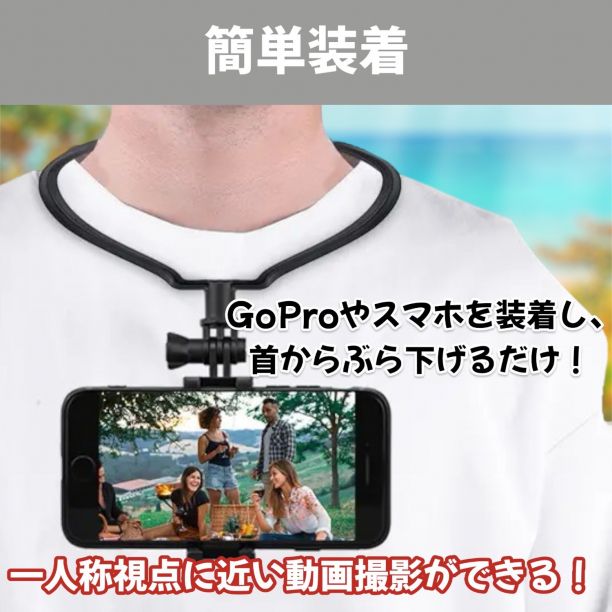 gopro アクセサリー スマホホルダー ハンズフリー ゴープロ GoPro・スマホ対応 ネックマウントホルダー ハンズフリー撮影 首掛け式 軽量PBT素材 一人称視点撮影 最適 tn-179