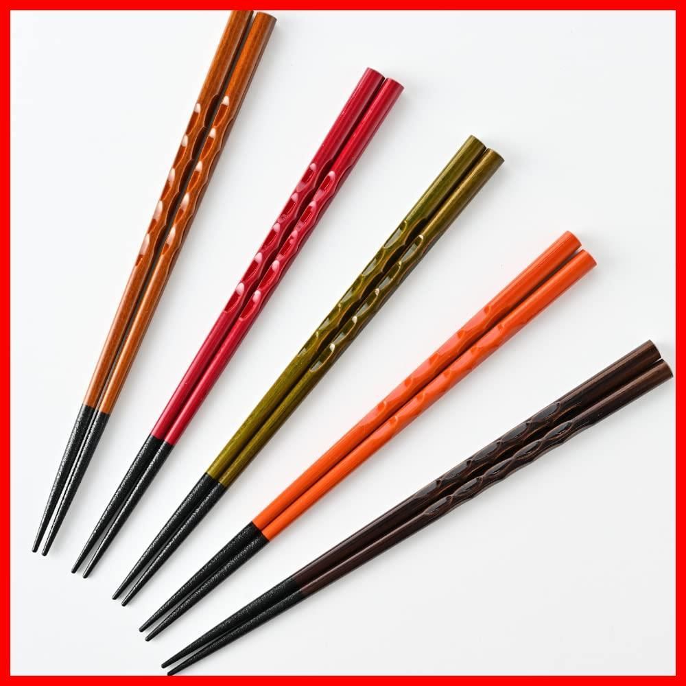 日本製 抗菌 国産 塗り箸 滑らない 5色 お箸セット 若狭塗 滑り止め はし おしゃれ お箸 箸 モダン / シンプル 5膳セット 大人 もちやすい木彫り箸 プチギフト 自社工場で製造][お箸工場]食洗機対応 持ちやすい [福井県小浜