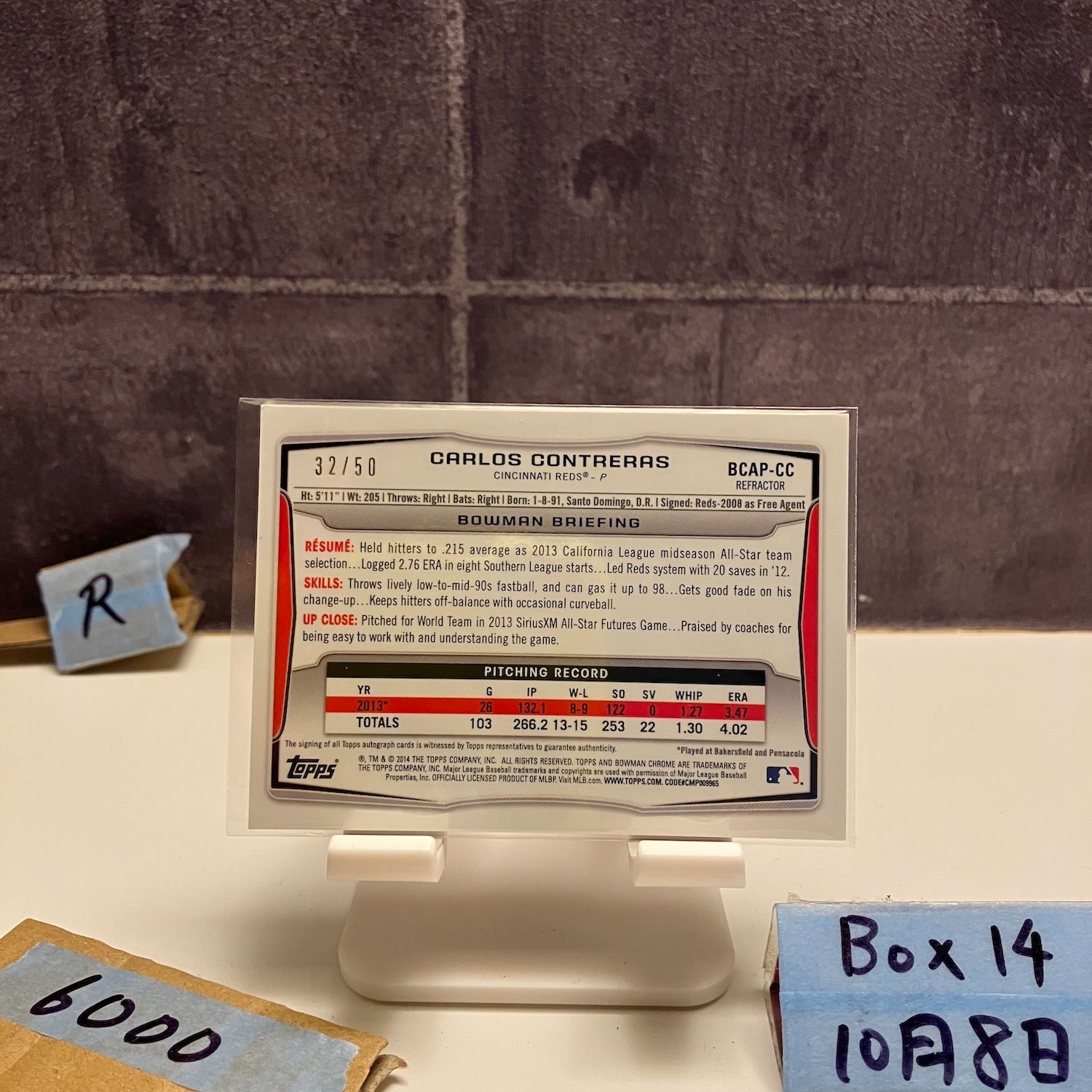 2014 Topps Bowman Chrome Carlos Contreras 32/50 直筆サインカード CINCINNATI REDS Refractor カード