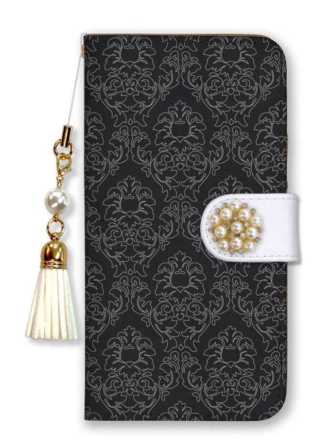 Google Pixel 4a (5G) ケース 手帳型 グーグルピクセル4a(5G) スマホケース パール デコ ストラップ付 おしゃれ レザー ダマスク柄 上品 大人 可愛い かわいい ブランド ピンク カラー10
