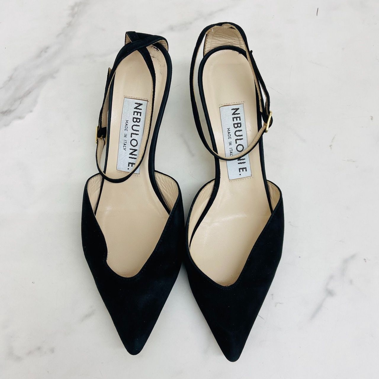 NEBULONI E. ネブローニ スエード パテント アンクルストラップパンプス サンダル 37
