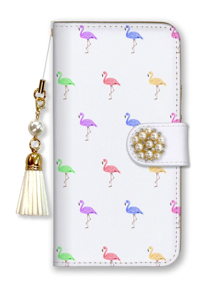 AQUOS zero2 SH-01M SHV47 SH-M13 ケース 手帳型 アクオスゼロ2 スマホケース パール デコ ストラップ付 おしゃれ 流行 トレンド フラミンゴ 西海岸 大人 可愛い ブランド ピンク ブルー カラー09