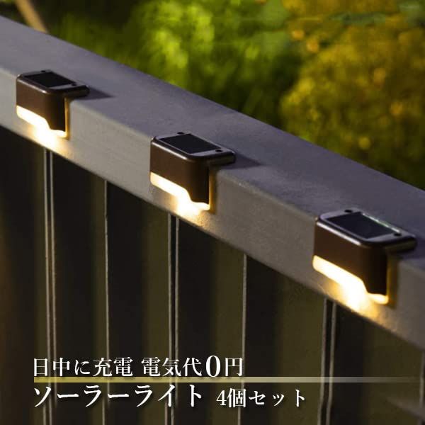 ソーラーライト 屋外 防水 ガーデンライト 階段 自動点灯 LED 4個セット 門灯 デッキ ベランダ ガーデン 暖光