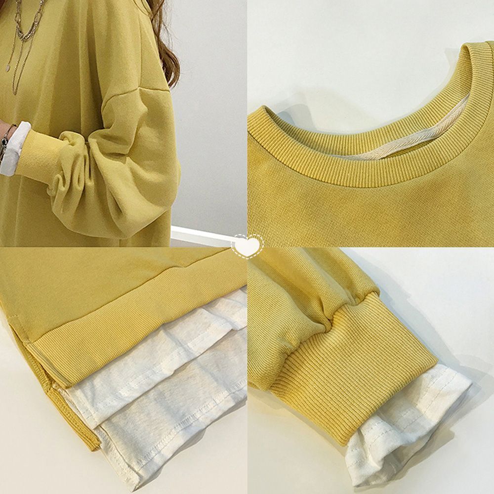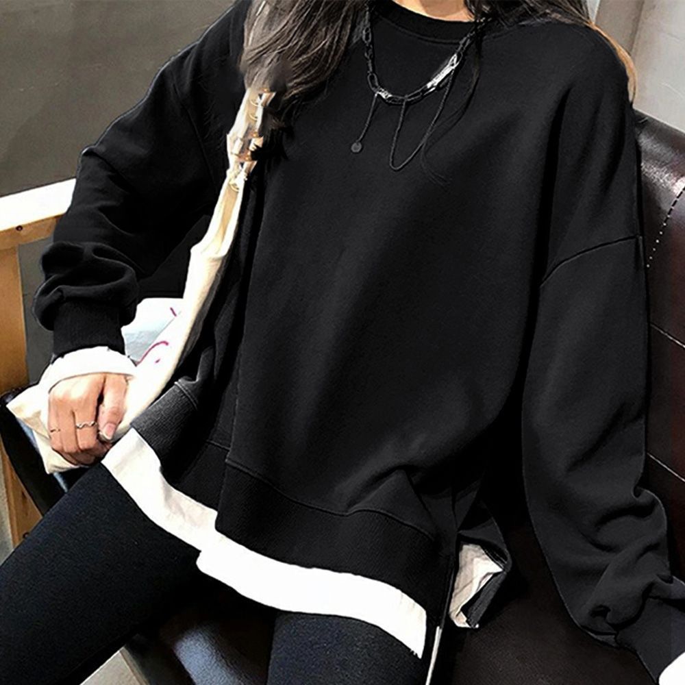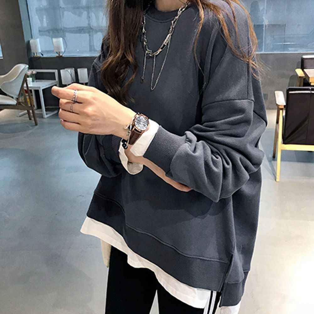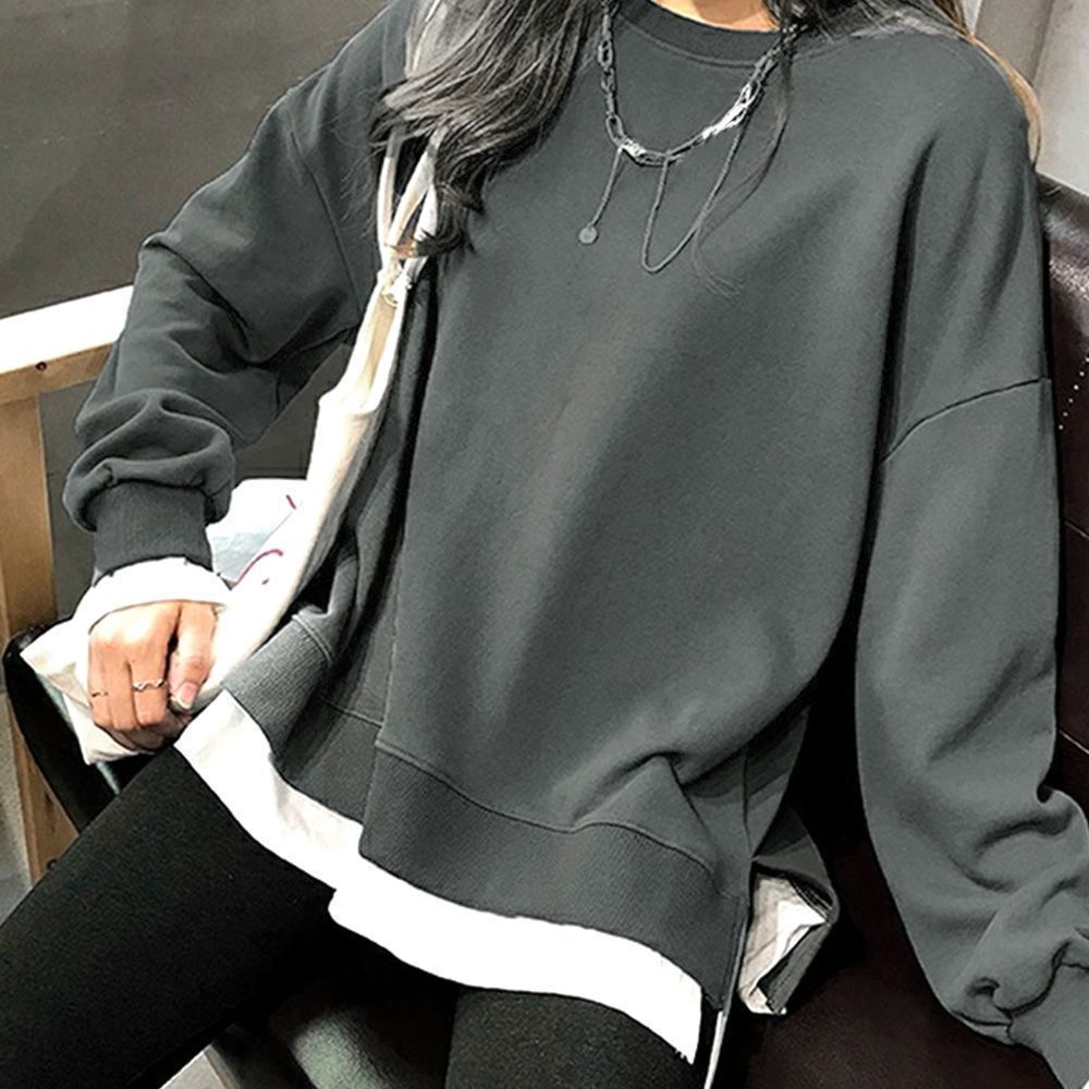 レイヤード風 スウェットトレーナー 春秋 レディース 重ね着風 オーバーサイズ トップス 無地 長袖 クルーネック プルオーバー ゆっ0820