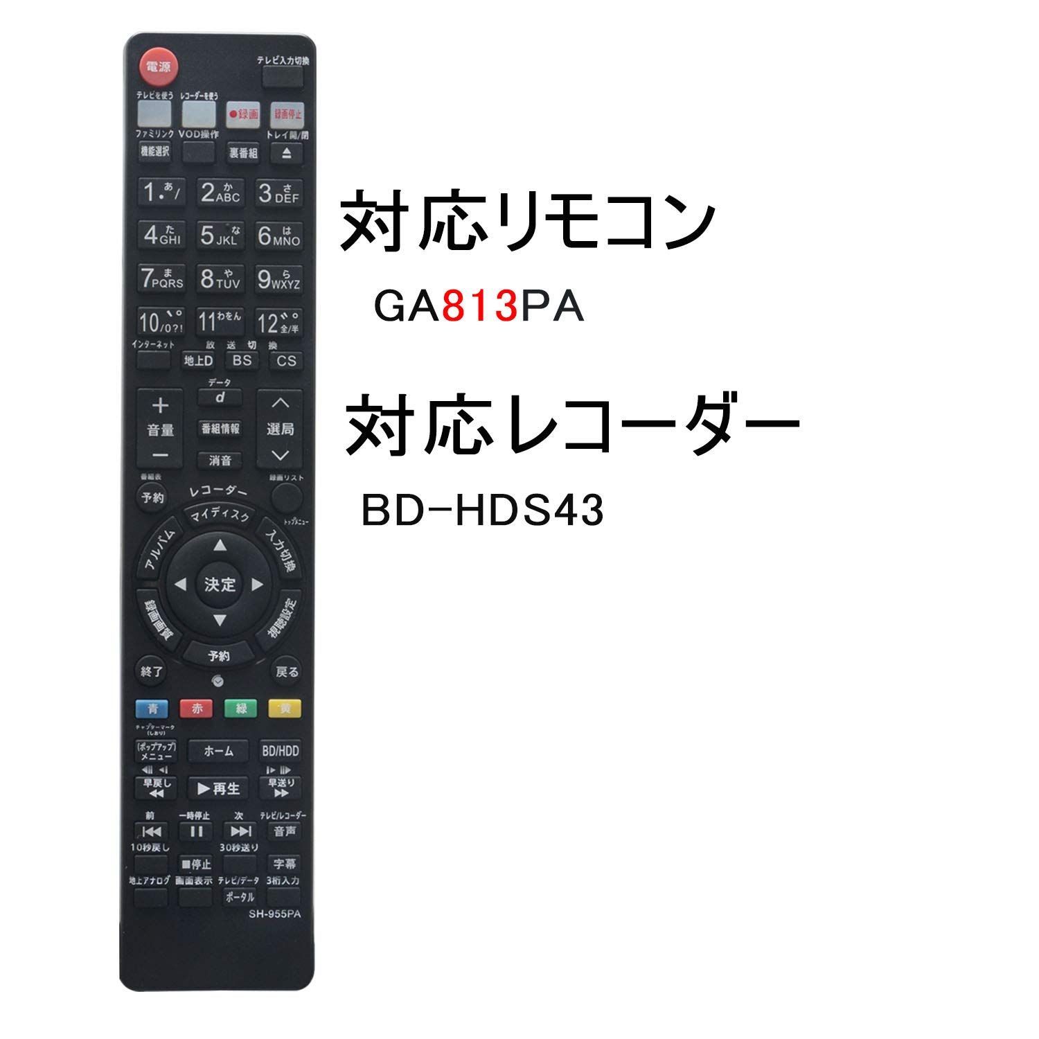 【特価商品】replace for 代用リモコン シャープ アクオス SHARP AQUOS PerFascin ブルーレイ リモコンGA813PA BD-HDS43